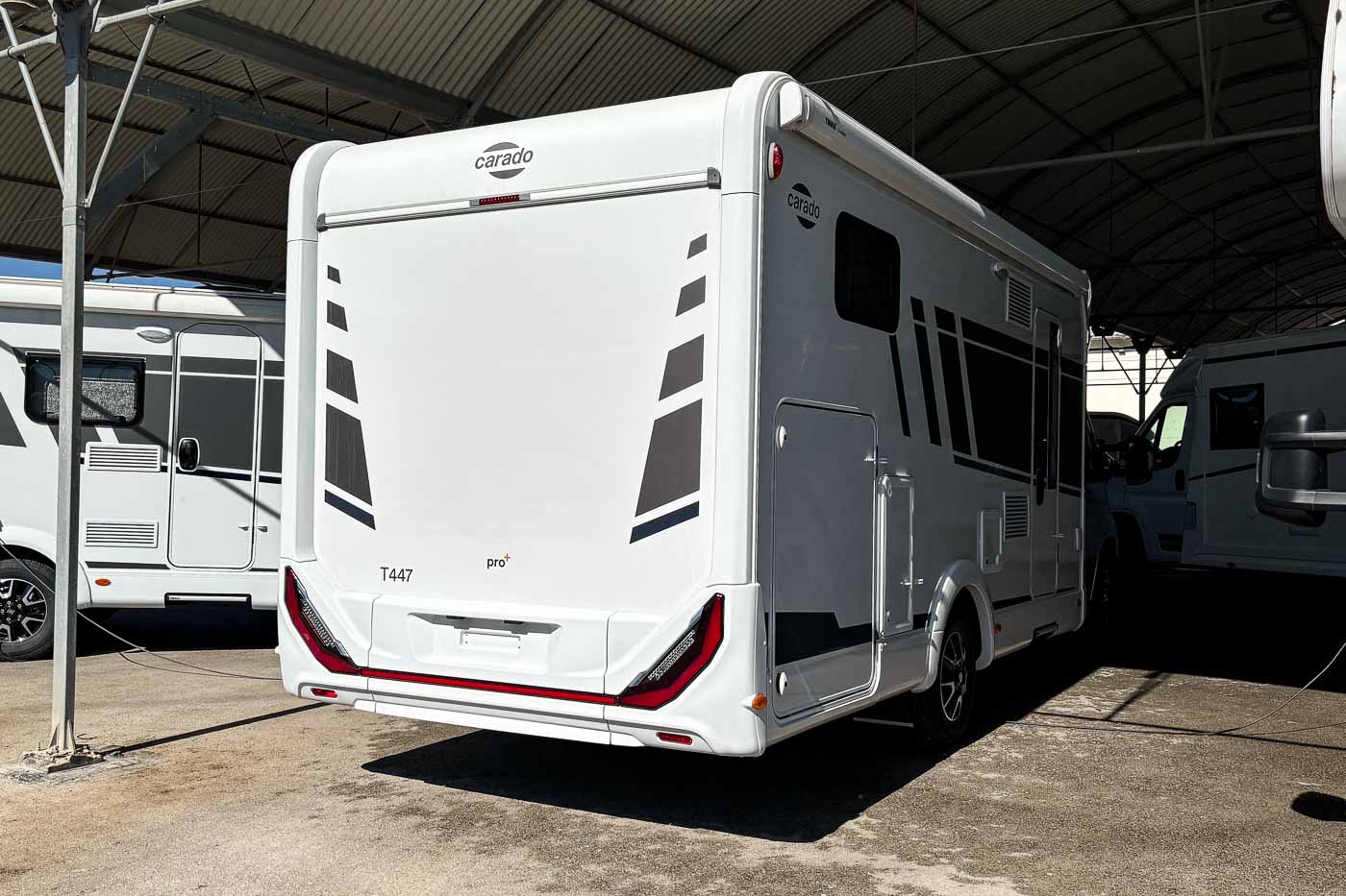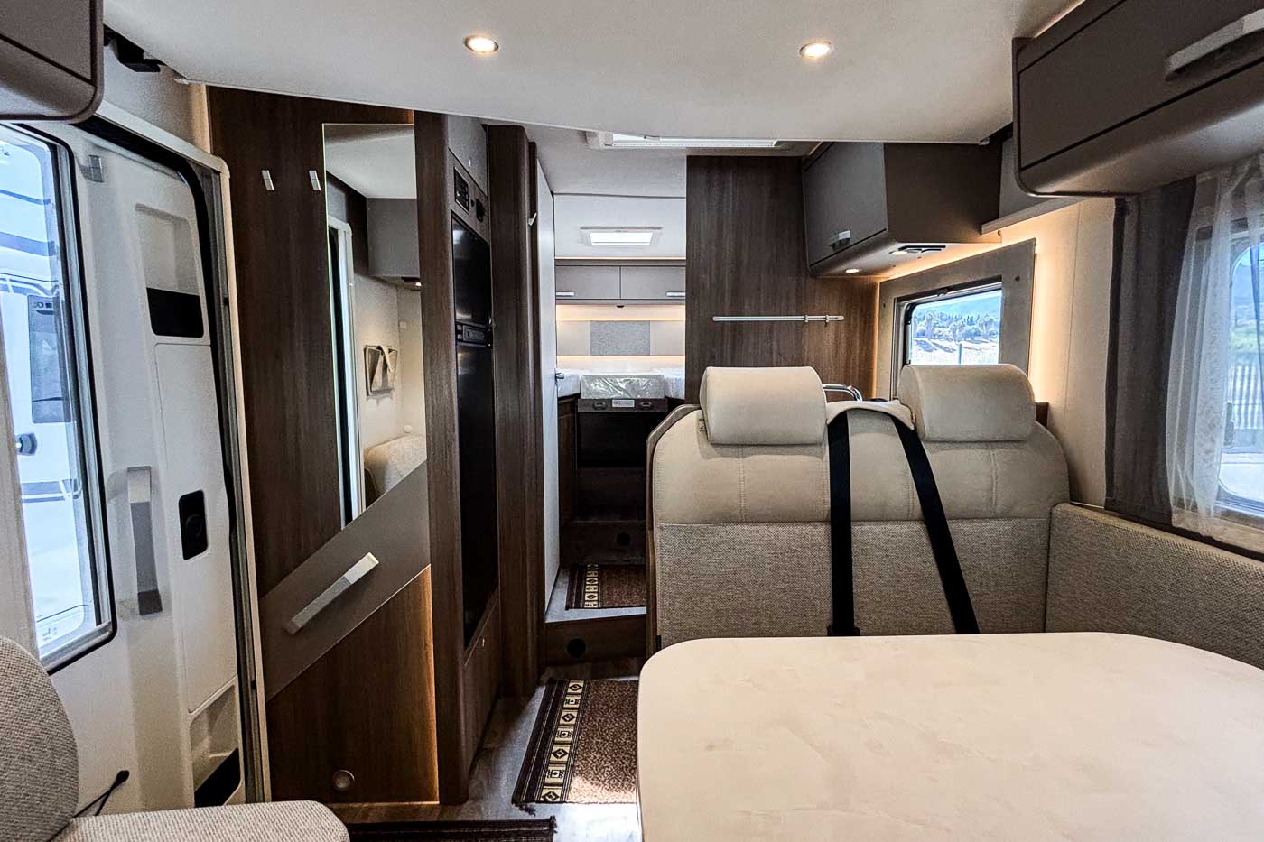 La Carado T 447 PRO+ es una autocaravana perfilada con capacidad para cuatro personas tanto durante la marcha como para dormir.