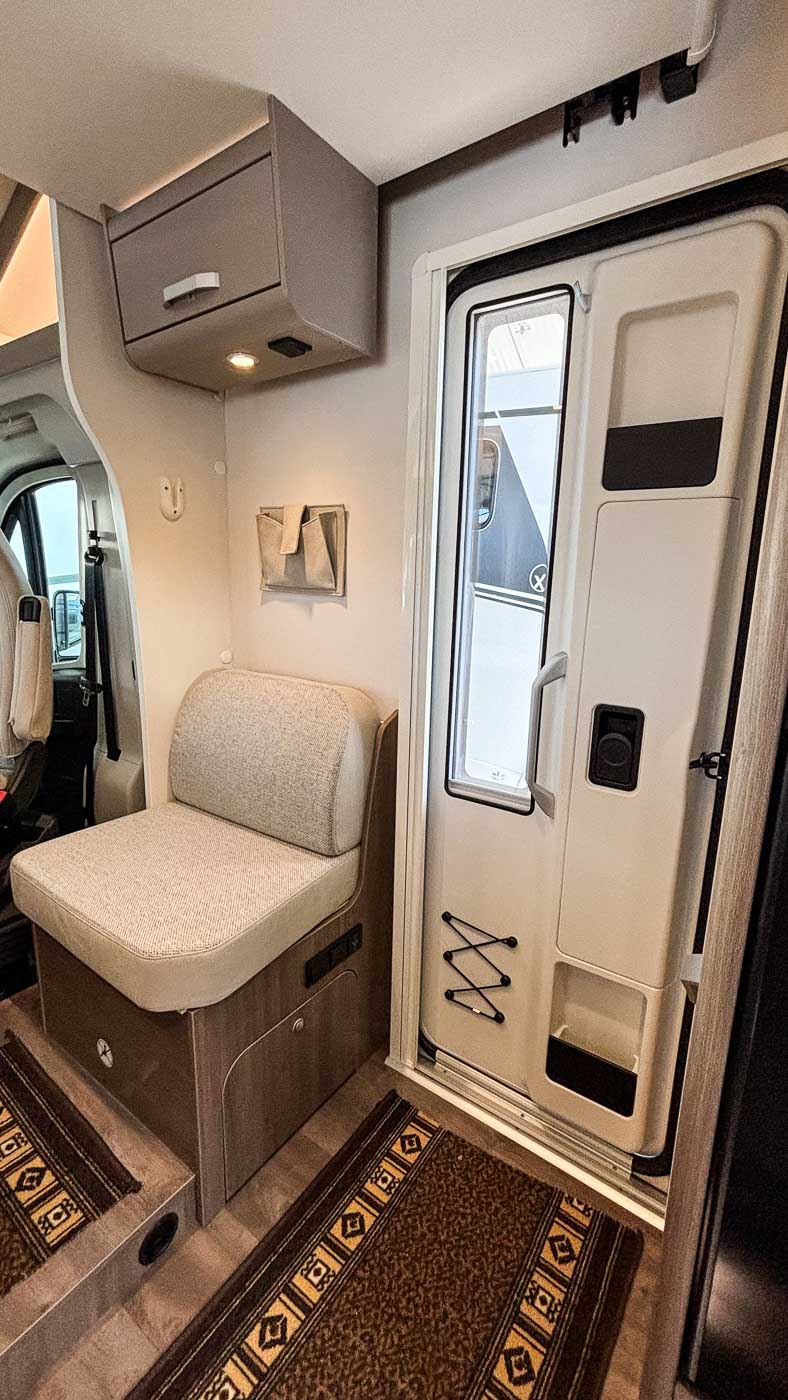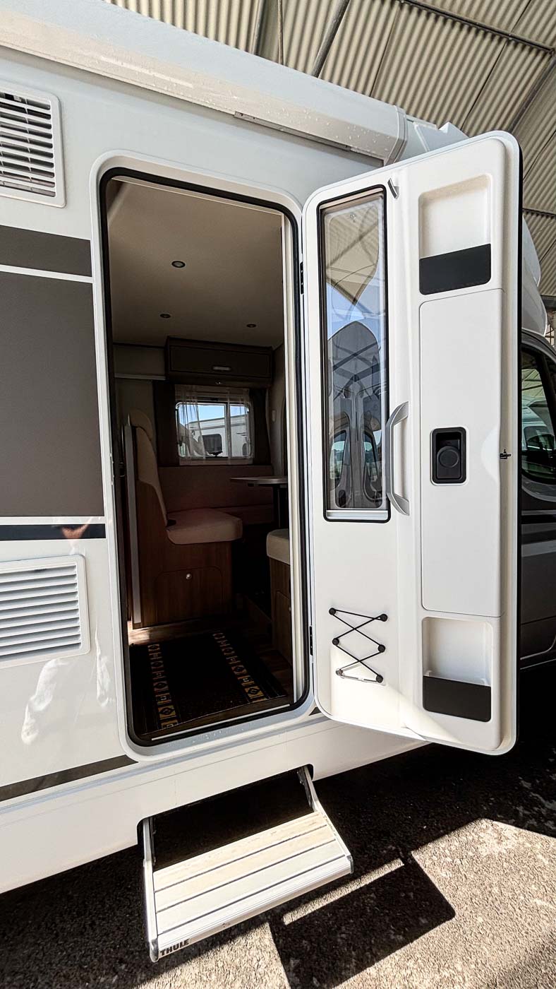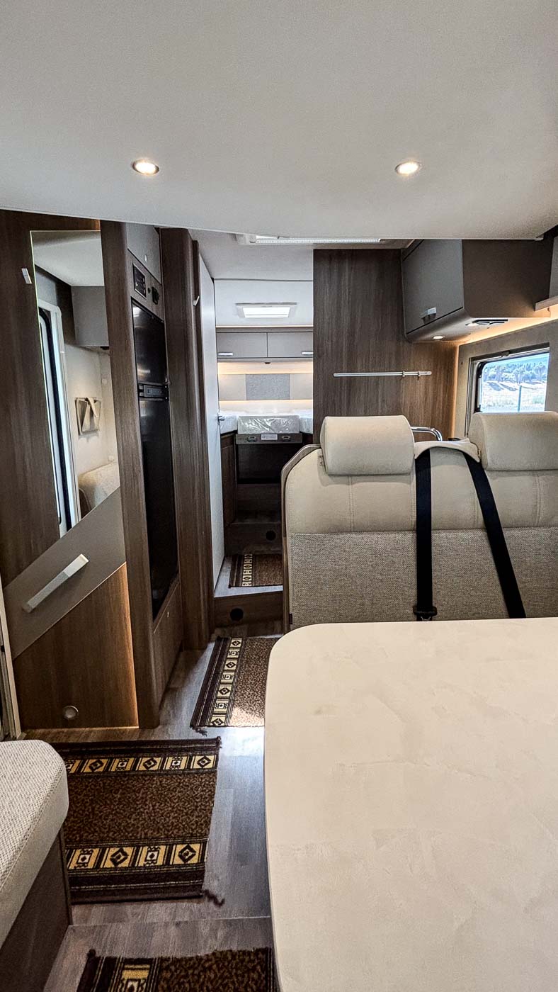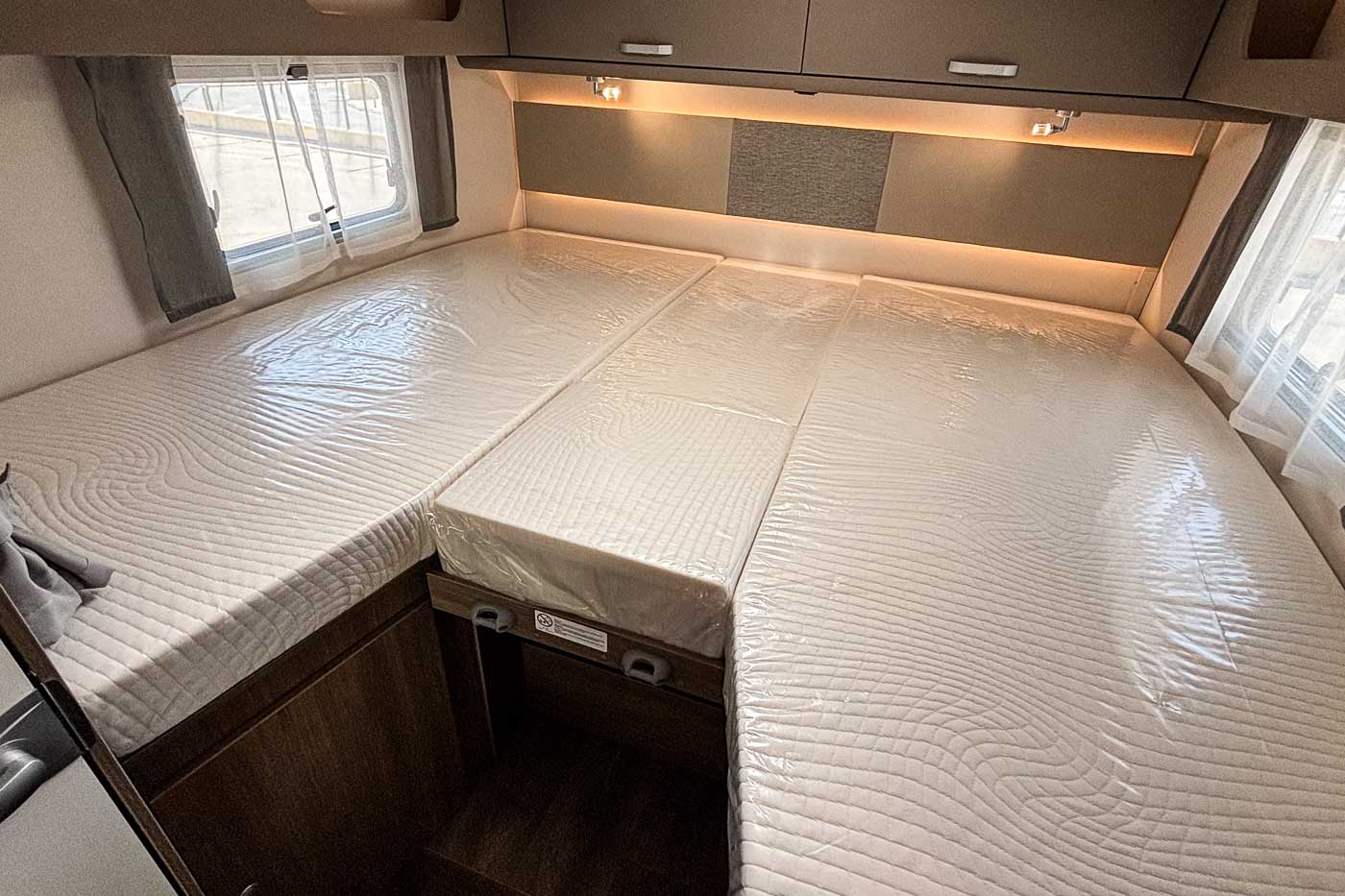 Su distribución interior se caracteriza principalmente por disponer de camas gemelas en la parte trasera, transformable en una cama de grandes dimensiones. Cuenta con numerosos espacios de almacenamiento, tanto en la parte superior como en la parte inferior de la cama.