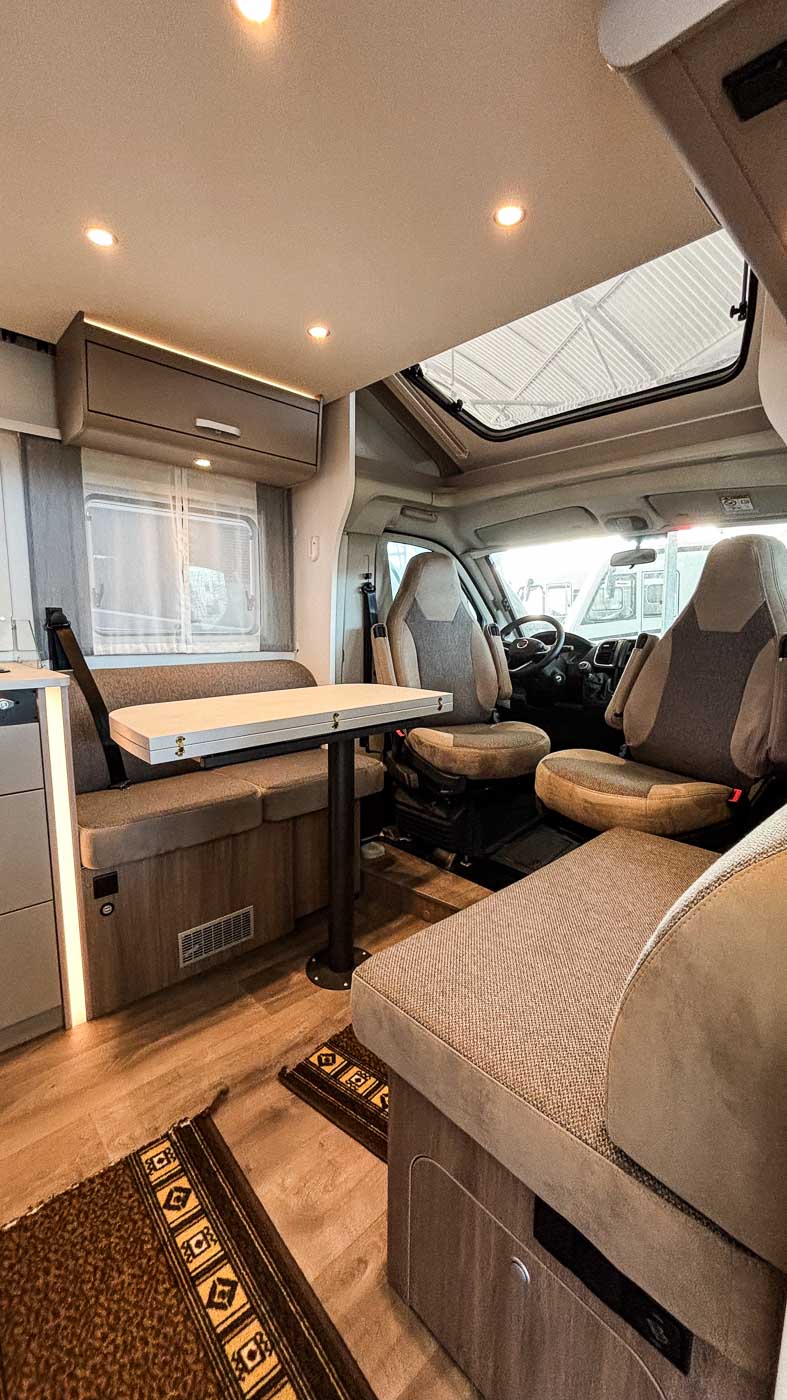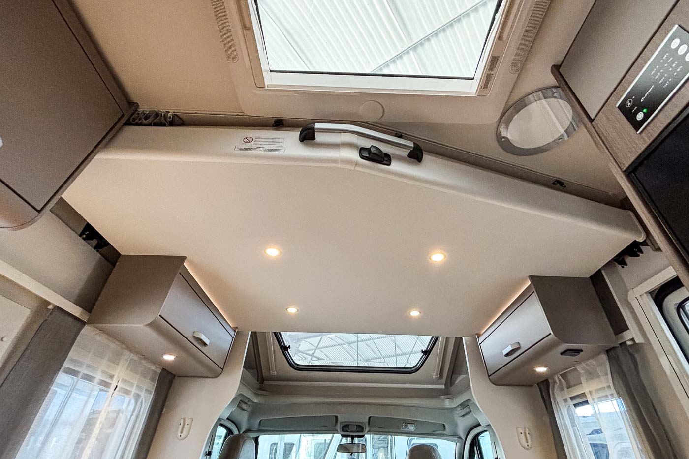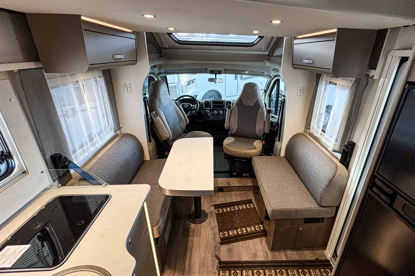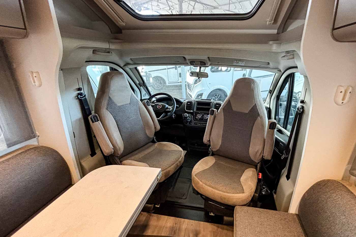 Dispone de gran salón “face to face”, con capacidad para cuatro personas, gracias a los asientos enfrentados, los asientos giratorios de la cabina y la mesa central plegable. Sobre el salón se dispone una segunda cama doble, perfectamente integrada en el techo, ofreciendo así hasta cuatro plazas para dormir.