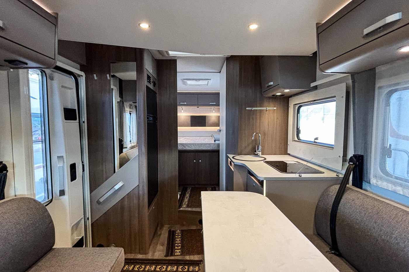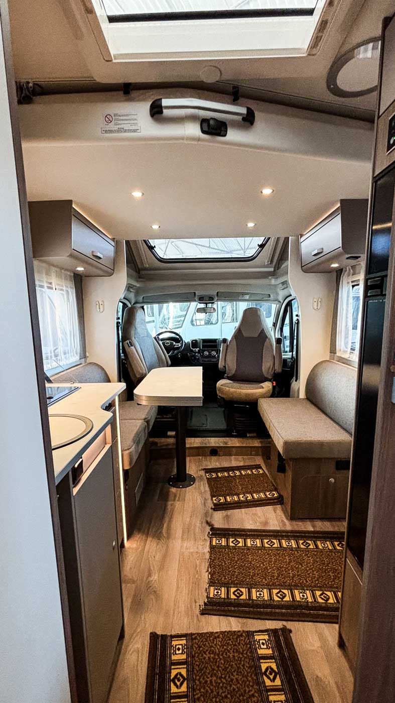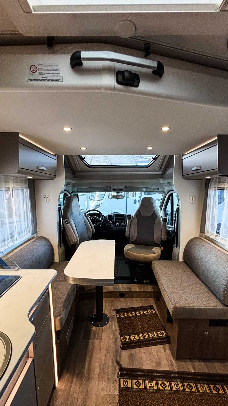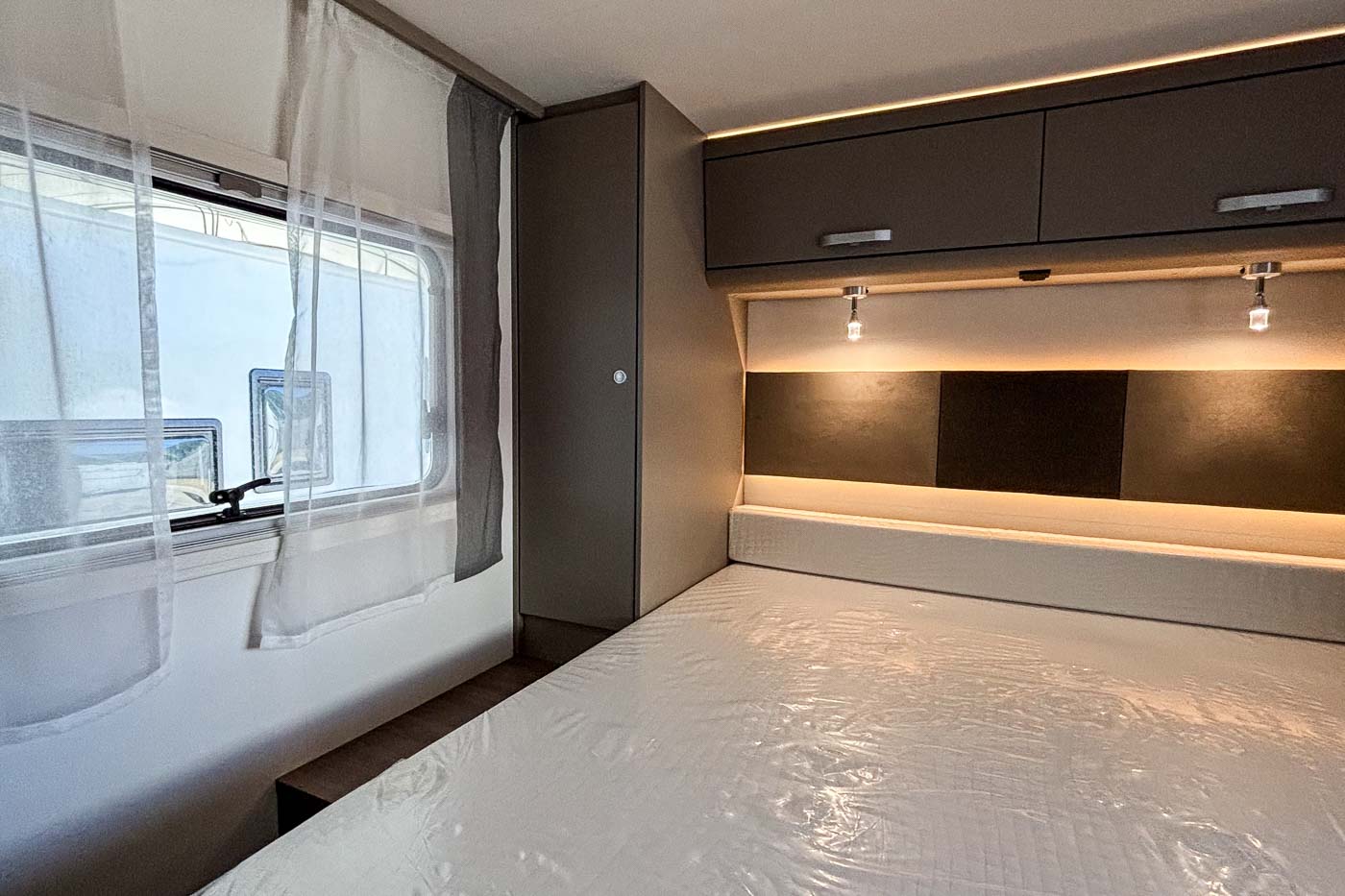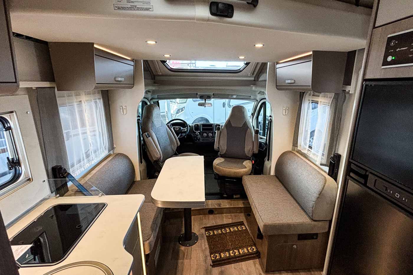 Dispone de gran salón “face to face”, con capacidad para cuatro personas, gracias a los asientos enfrentados, los asientos giratorios de la cabina y la mesa central plegable. Sobre el salón se dispone una segunda cama doble, perfectamente integrada en el techo, ofreciendo así hasta cuatro plazas para dormir.