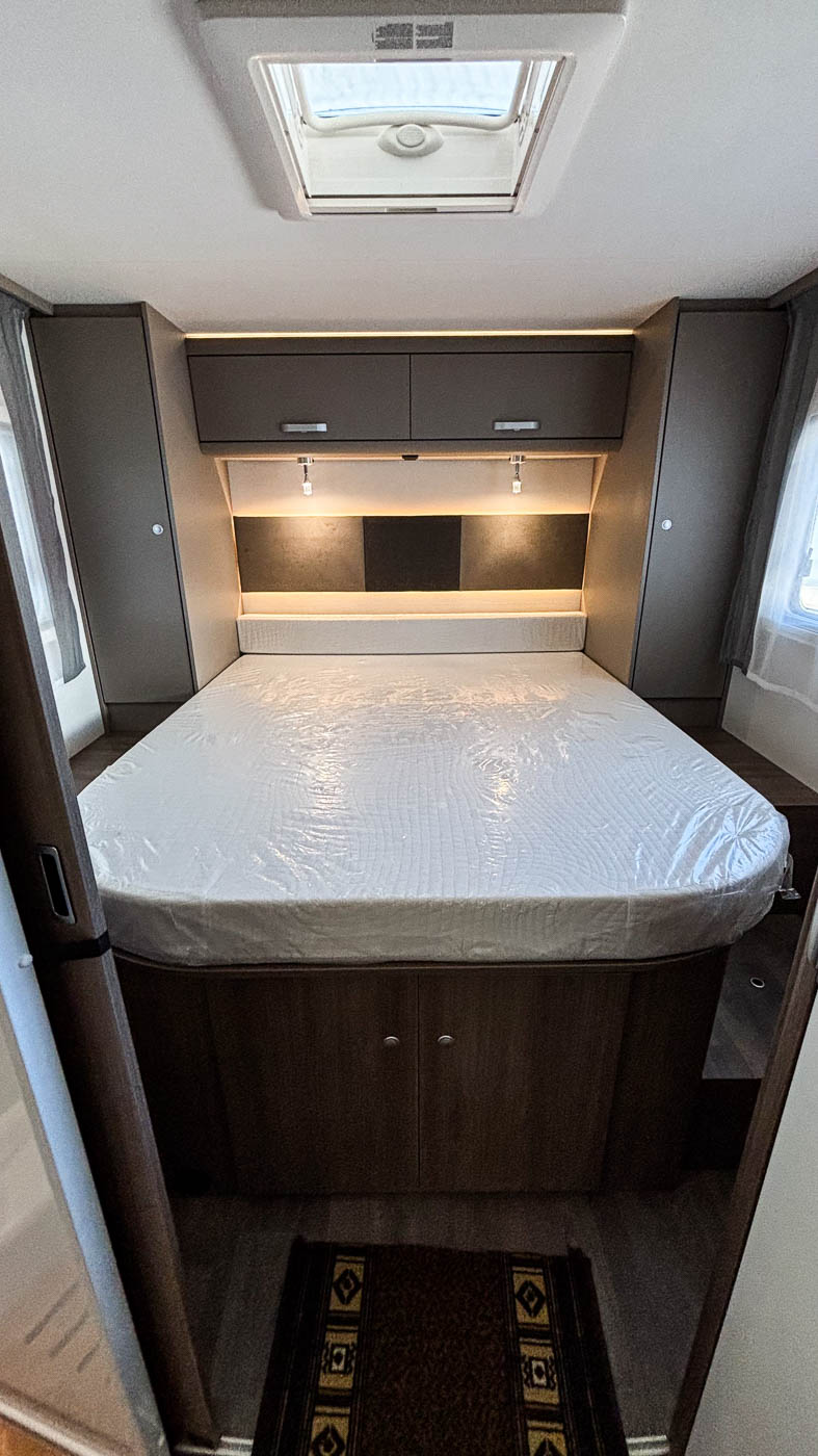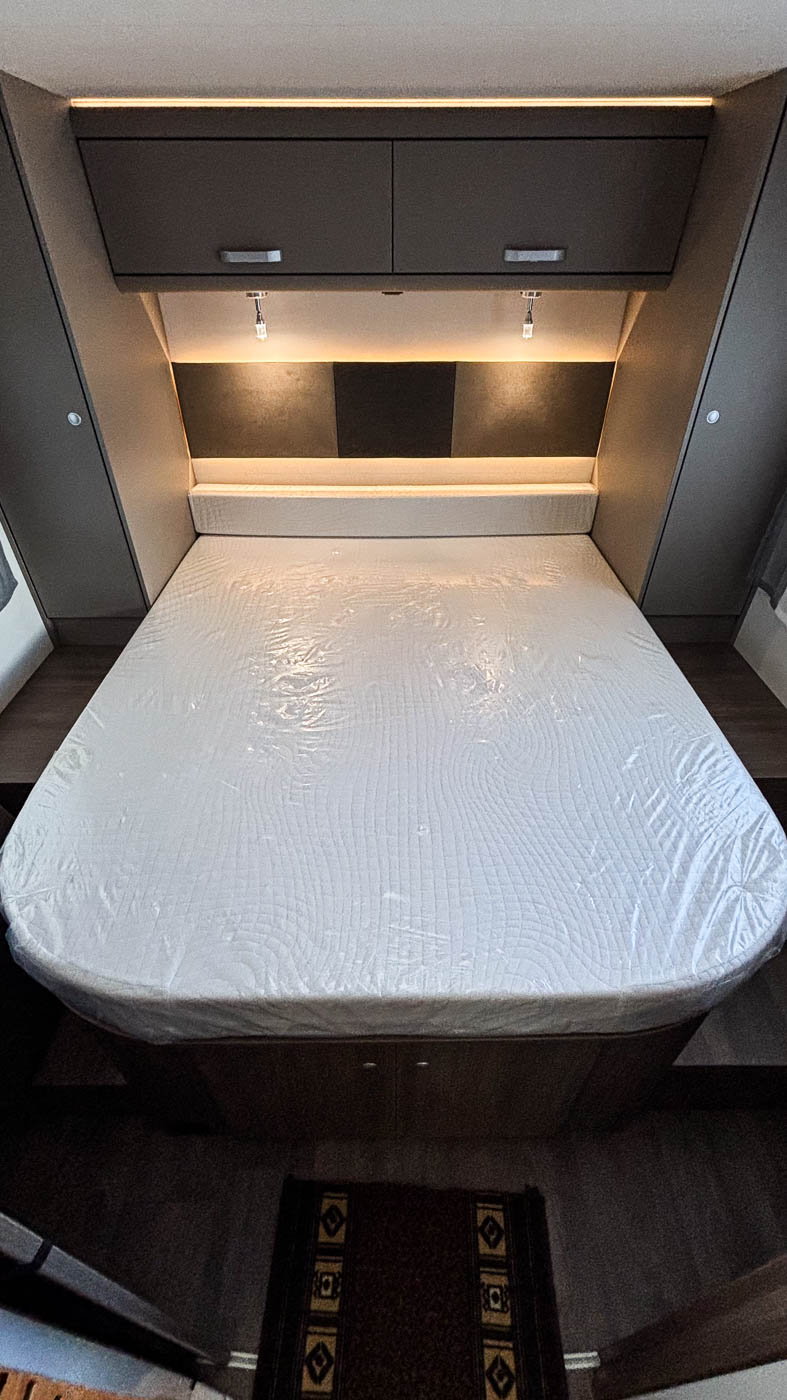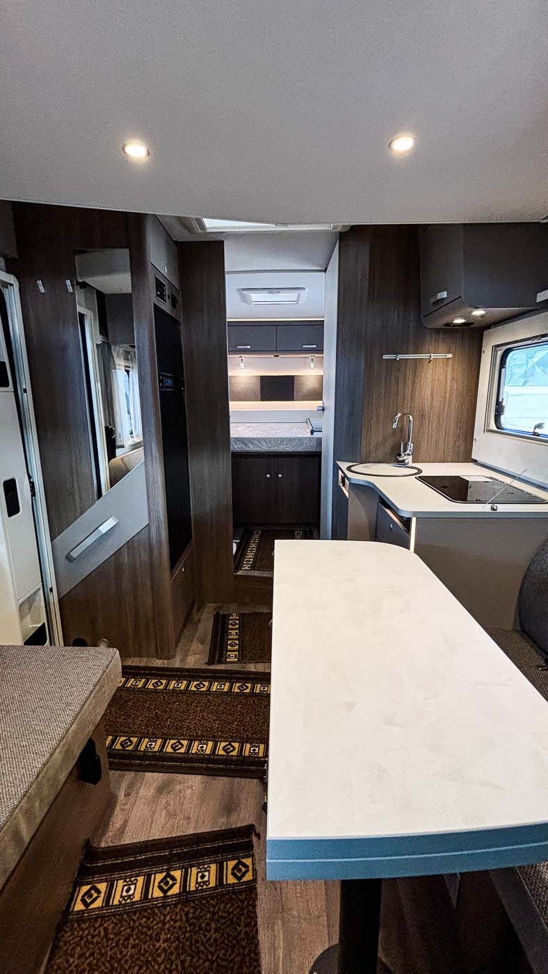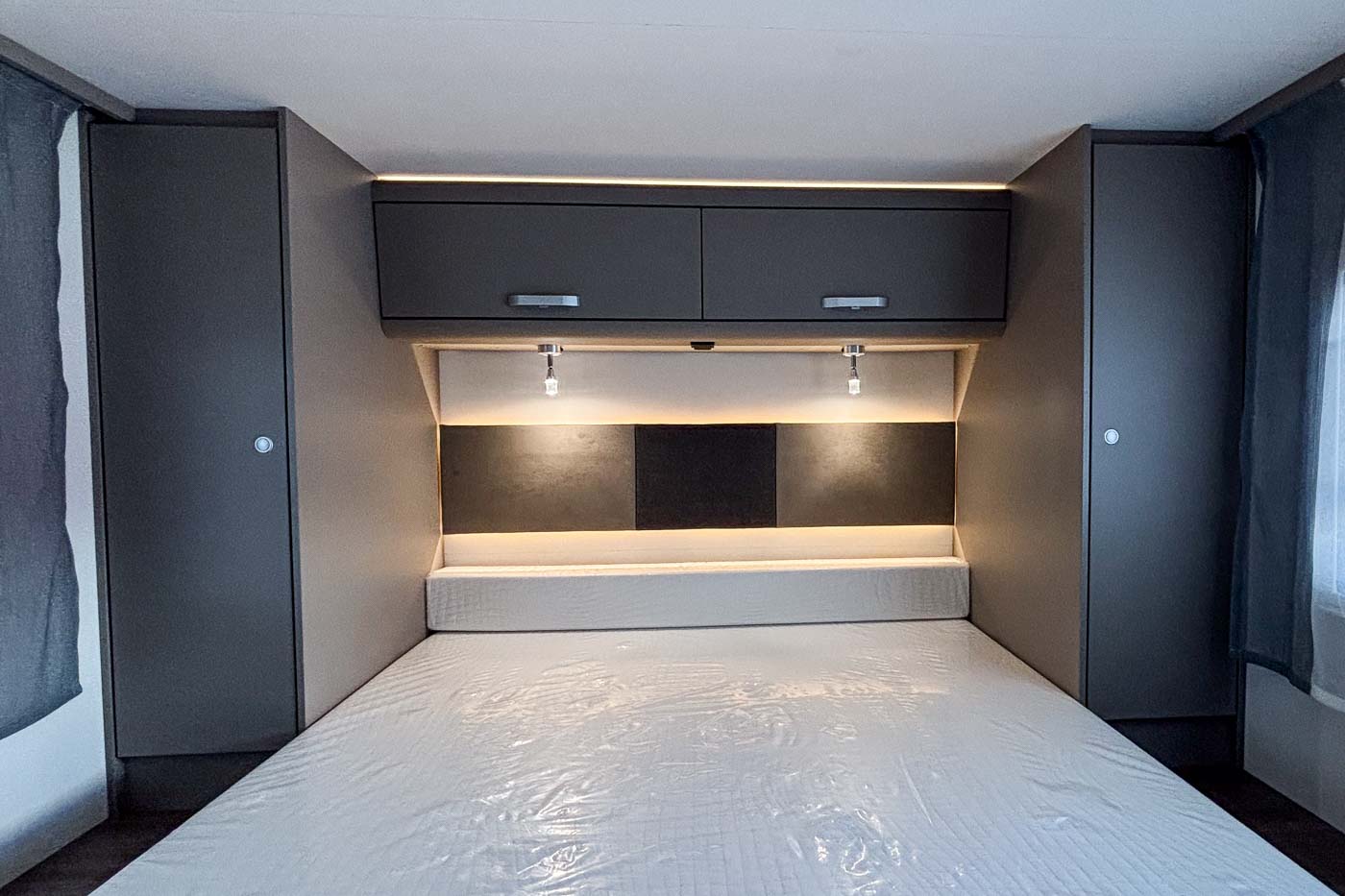 Dispone de gran salón “face to face”, con capacidad para cuatro personas, gracias a los asientos enfrentados, los asientos giratorios de la cabina y la mesa central plegable. Sobre el salón se dispone una segunda cama doble, perfectamente integrada en el techo, ofreciendo así hasta cuatro plazas para dormir.