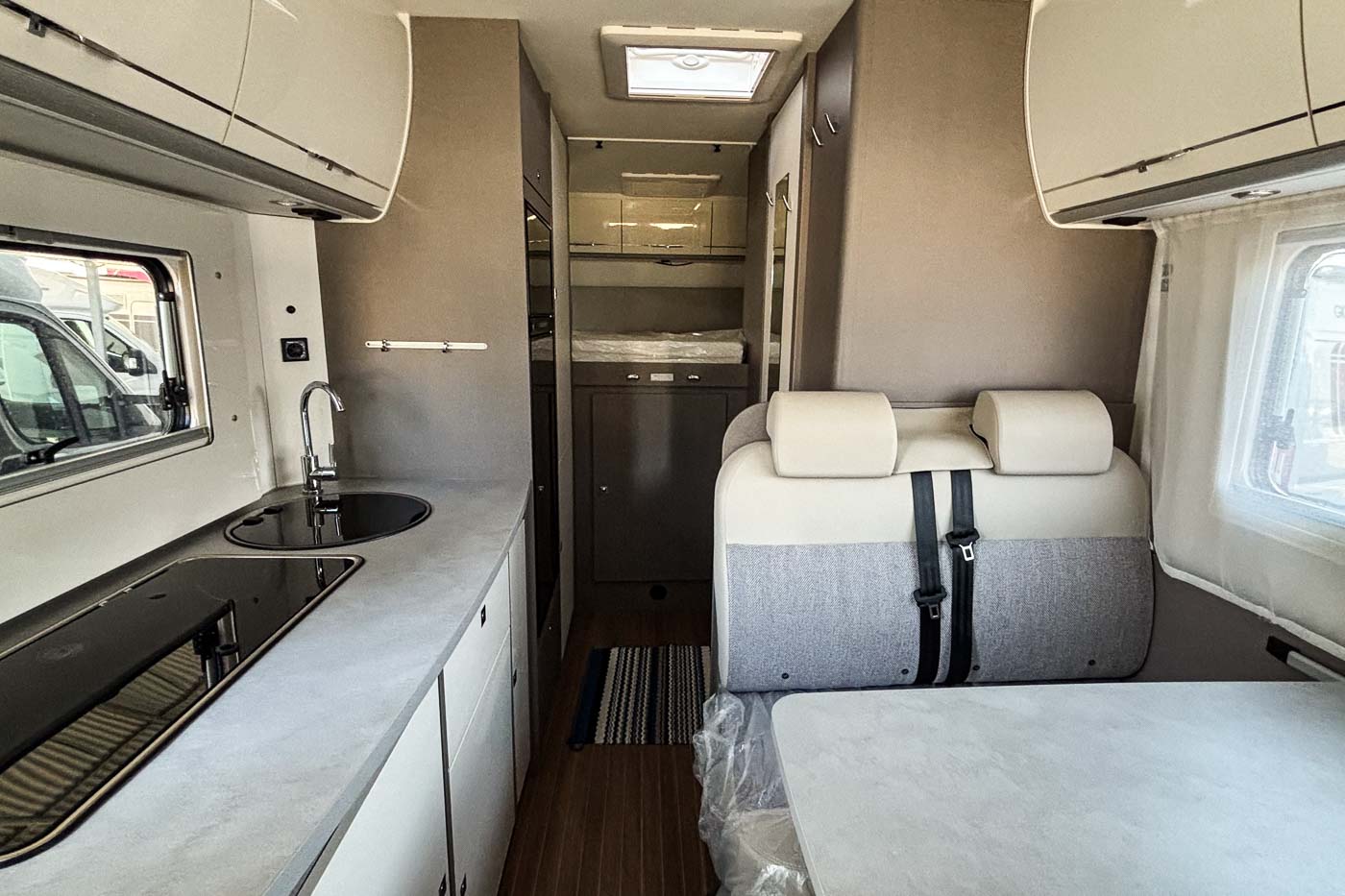 La Etrusco A 7300 DB es una autocaravana capuchina con capacidad para seis personas. Gracias a su distribución interior, es el vehículo perfecto para parejas, familias con hijos y grupos de amigos que quieran disfrutar de su tiempo libre como en casa.