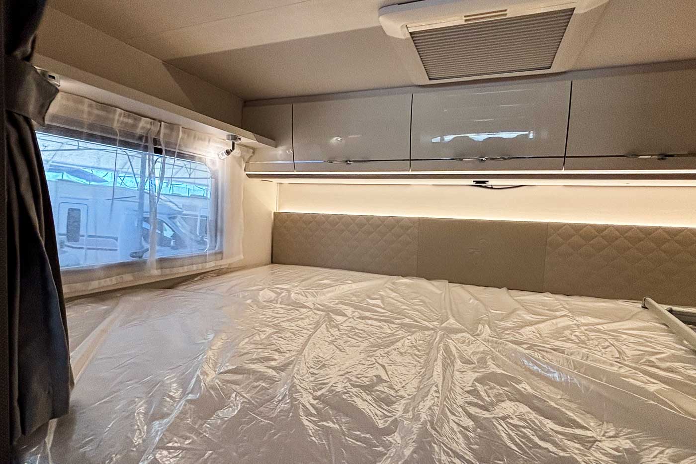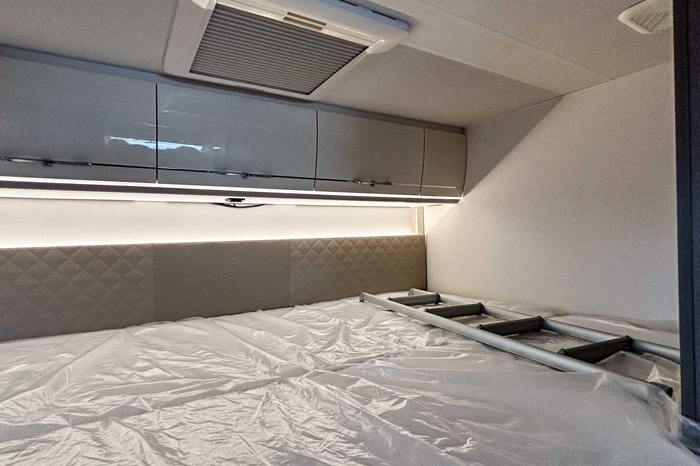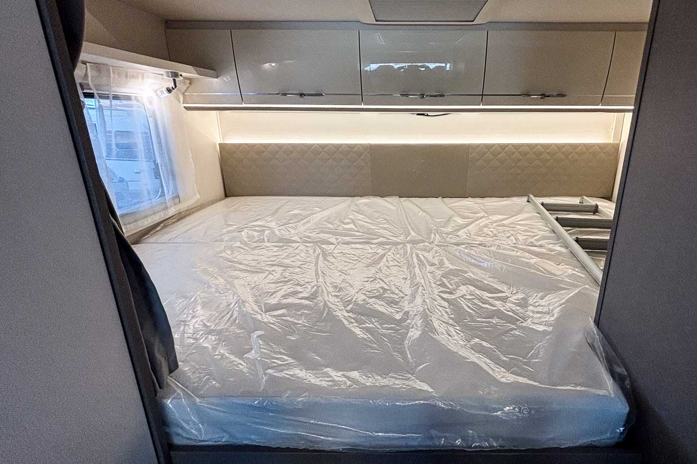Cuenta con amplia cama transversal en la parte trasera, con numerosos espacios de almacenamiento tanto en la parte superior como en la parte inferior de la cama.