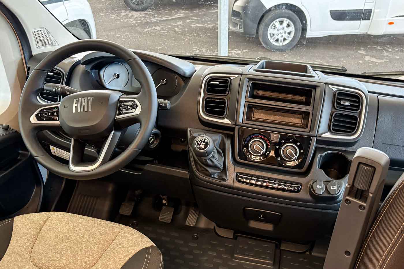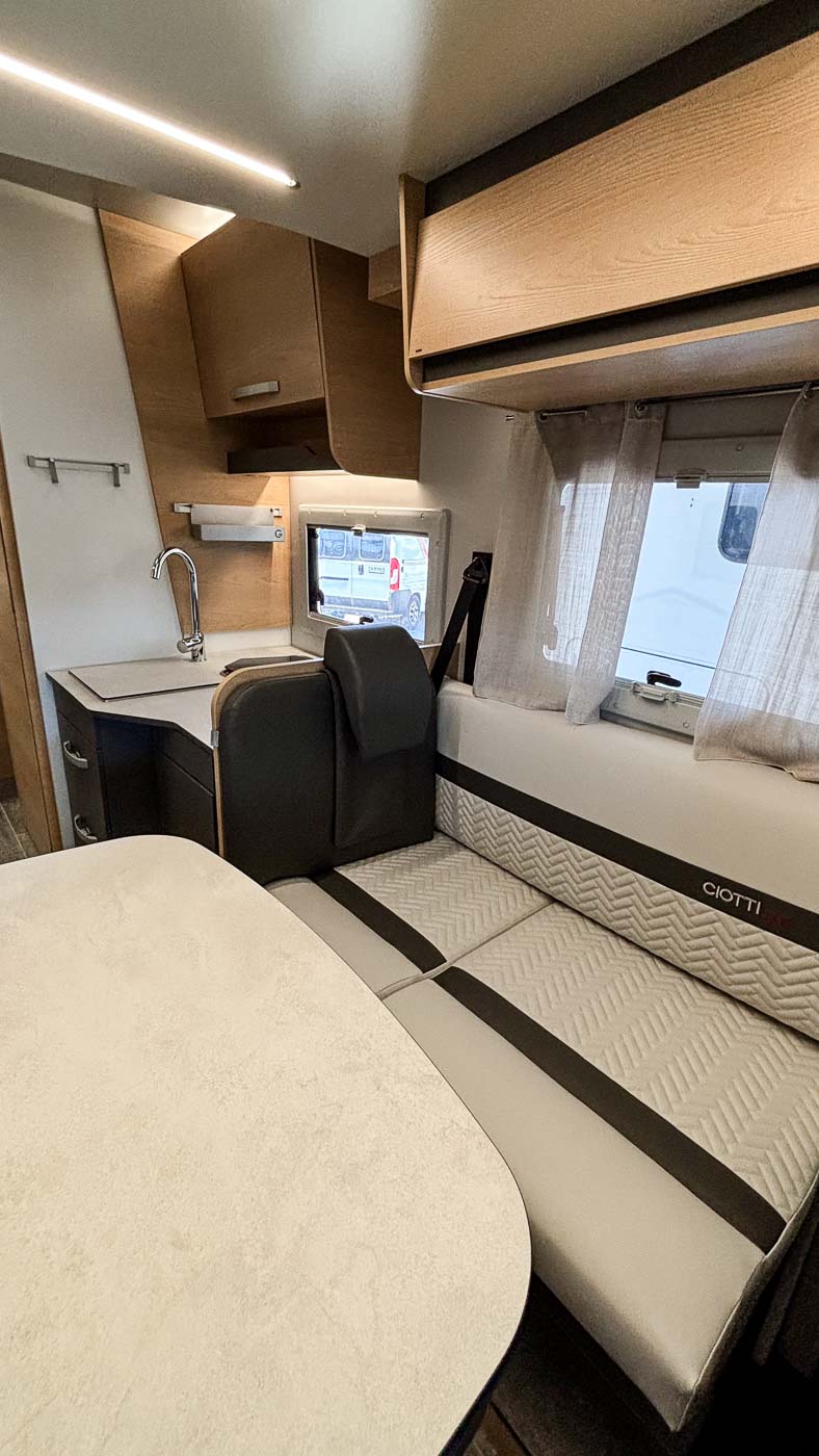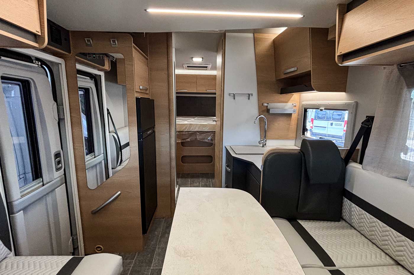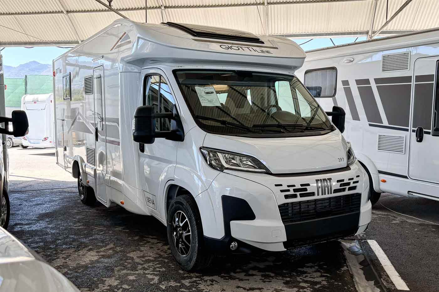 La Giottiline Siena 397 es una autocaravana perfilada compacta con capacidad para cuatro personas. Un vehículo perfecto para parejas y familias que quieran disfrutar de sus viajes con el máximo confort y espacio interior.