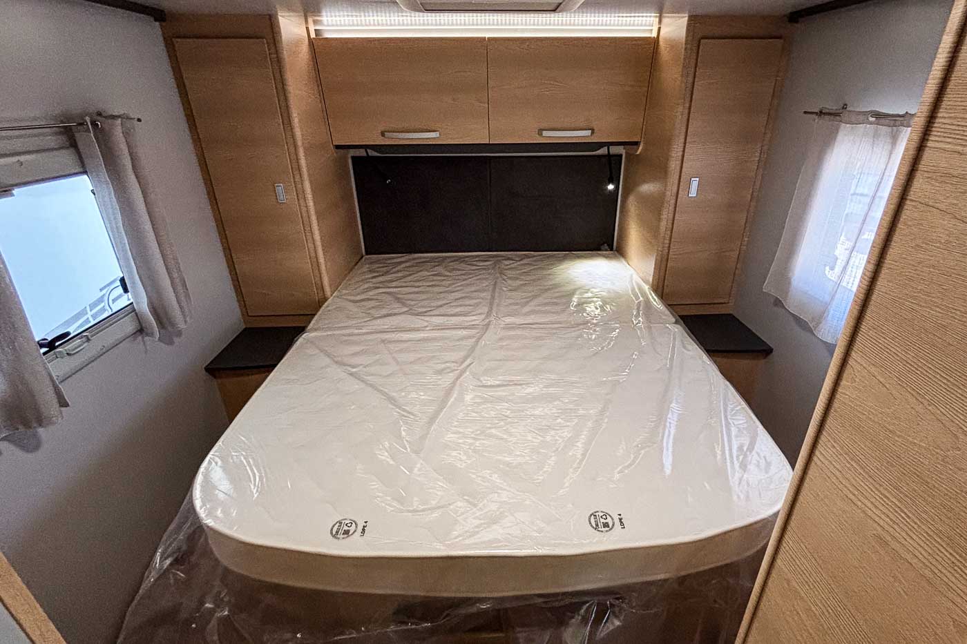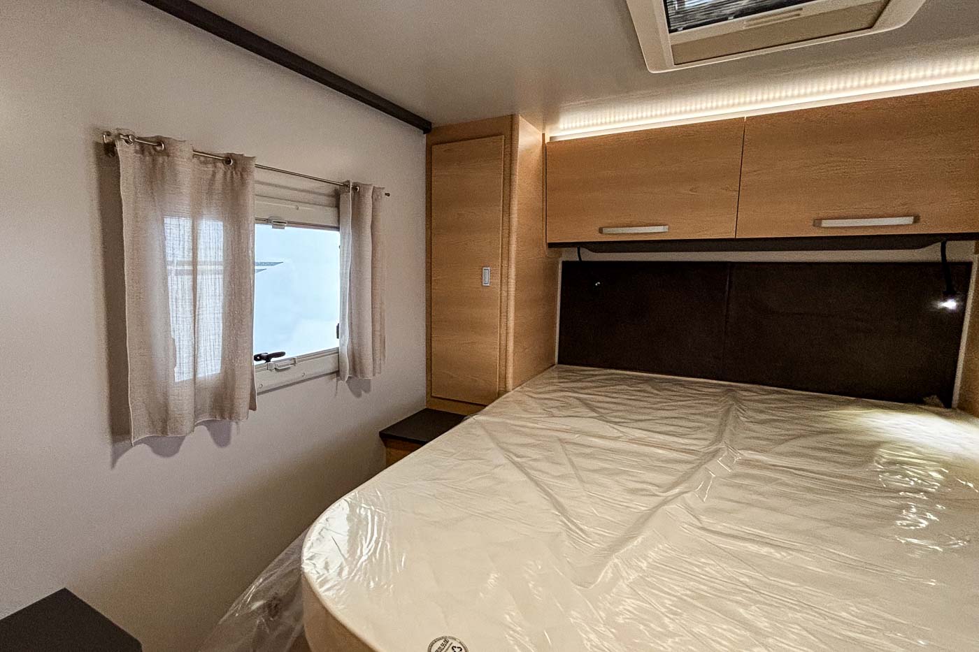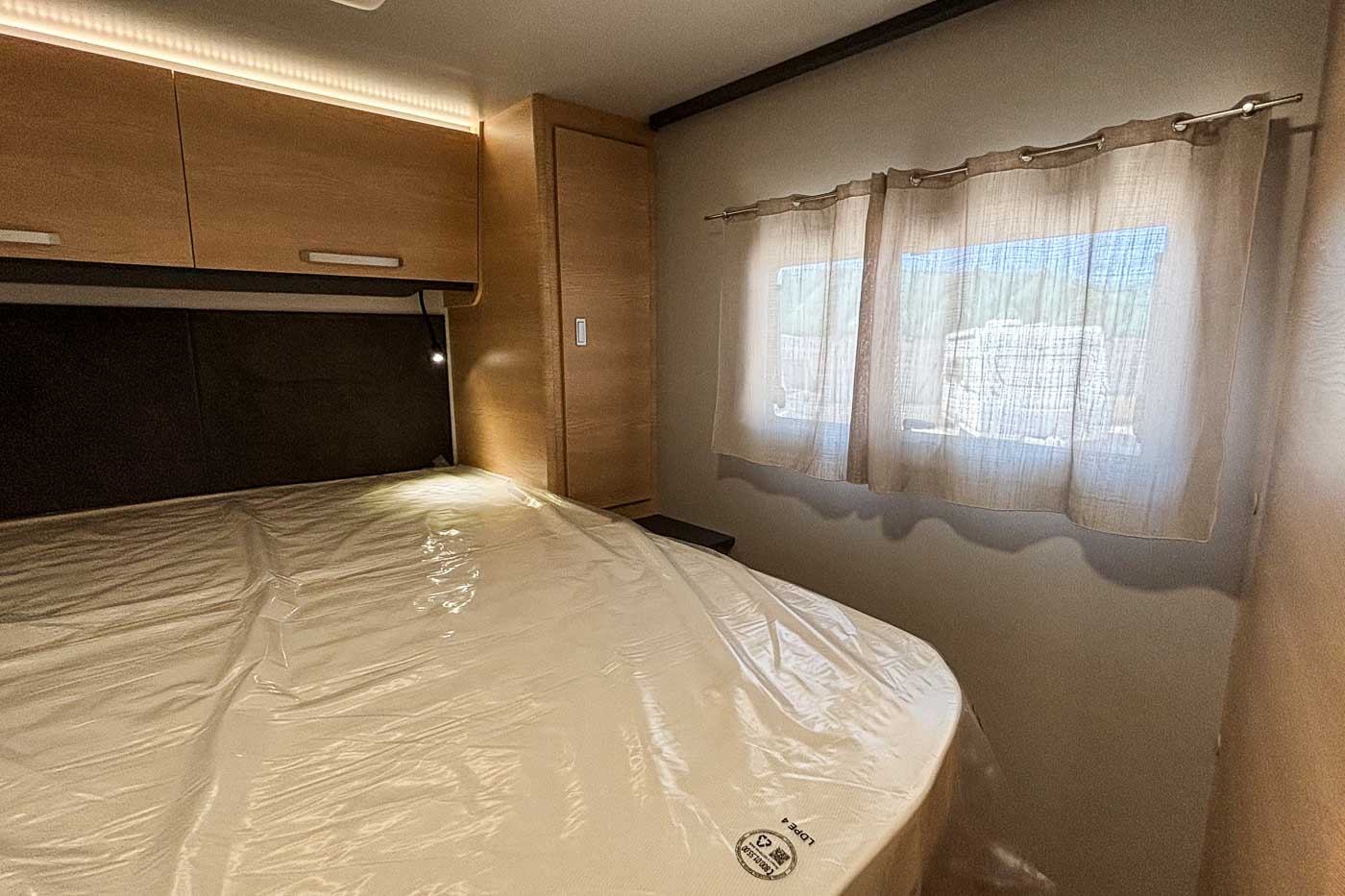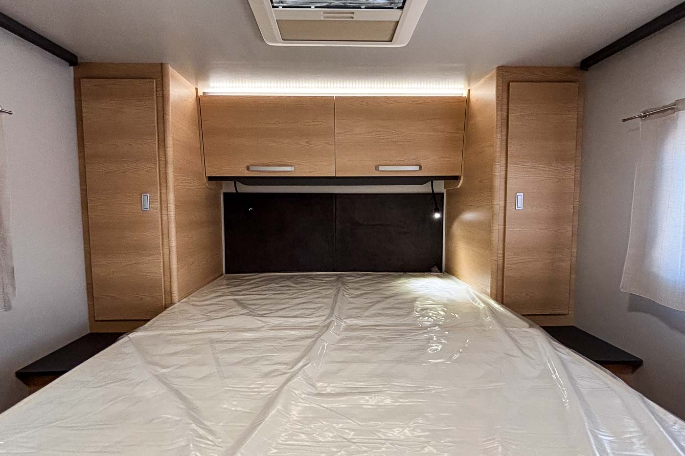 Su distribución se caracteriza por disponer de amplia cama isla en la parte trasera, fácilmente accesible desde ambos laterales. Cuenta con numerosos espacios de almacenamiento tanto en la parte superior como en la parte inferior de la cama.