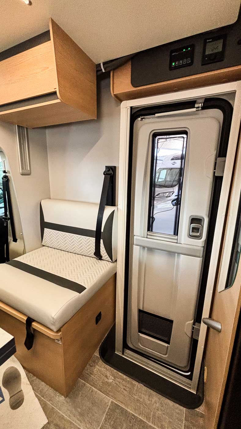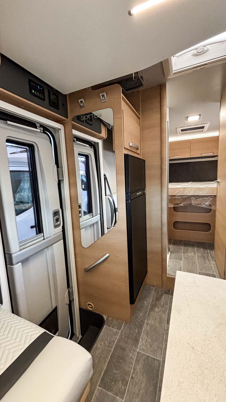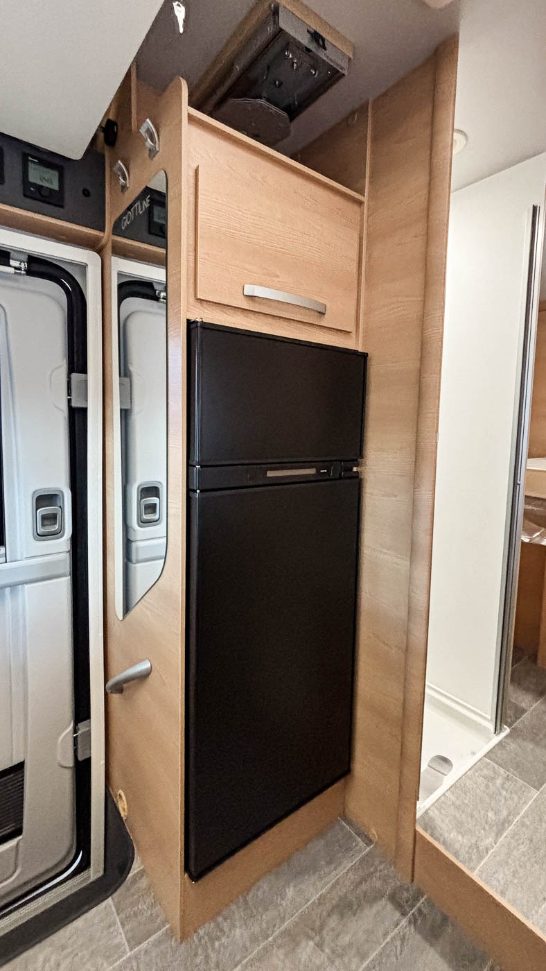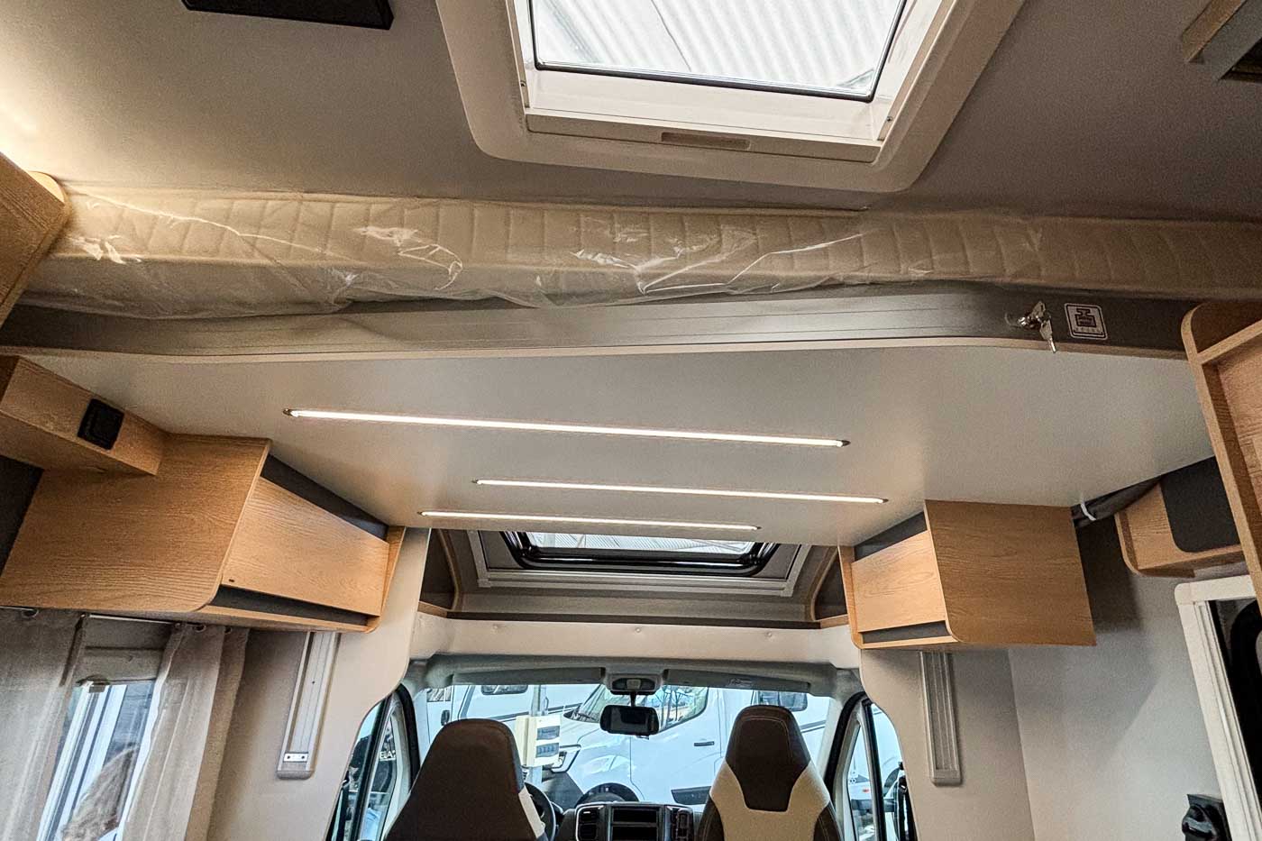 Su distribución se caracteriza por disponer de amplia cama isla en la parte trasera, fácilmente accesible desde ambos laterales. Cuenta con numerosos espacios de almacenamiento tanto en la parte superior como en la parte inferior de la cama.