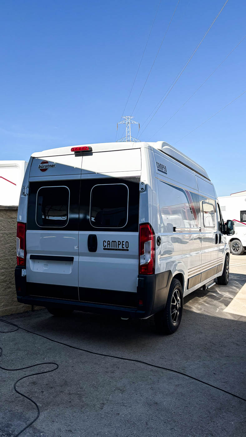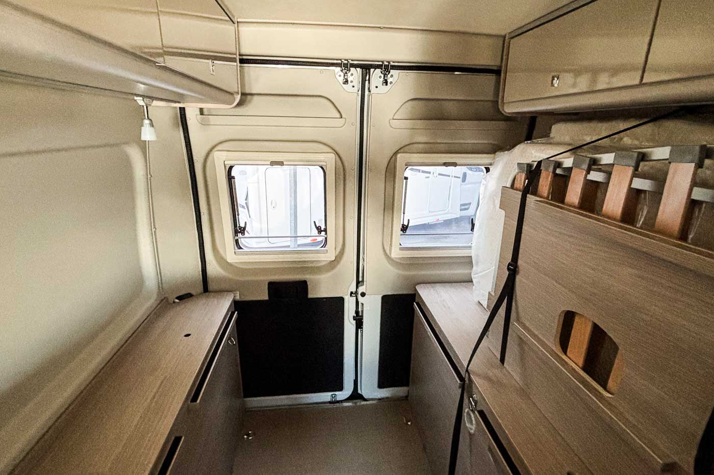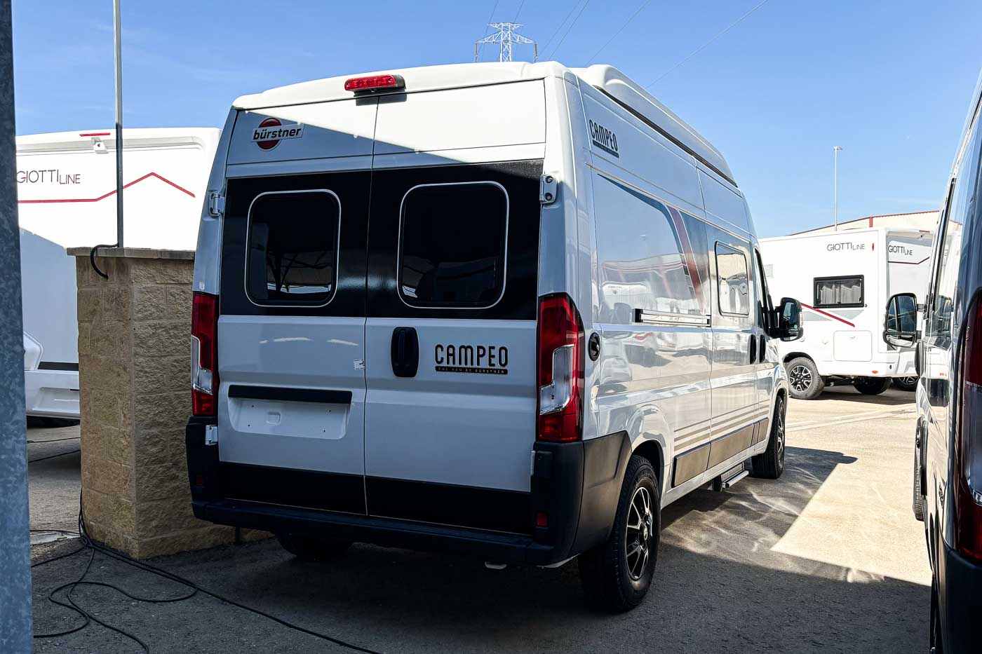 La Burstner Campeo C 600 cuenta con capacidad para cuatro personas, tanto durante la marcha como para dormir, gracias al techo elevable del que dispone. Cuenta además con una amplia cama doble en la parte trasera, fácilmente desmontable para permitir el acceso desde atrás así como la carga de equipaje.