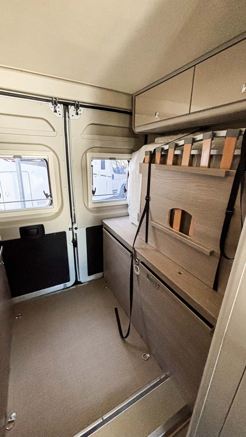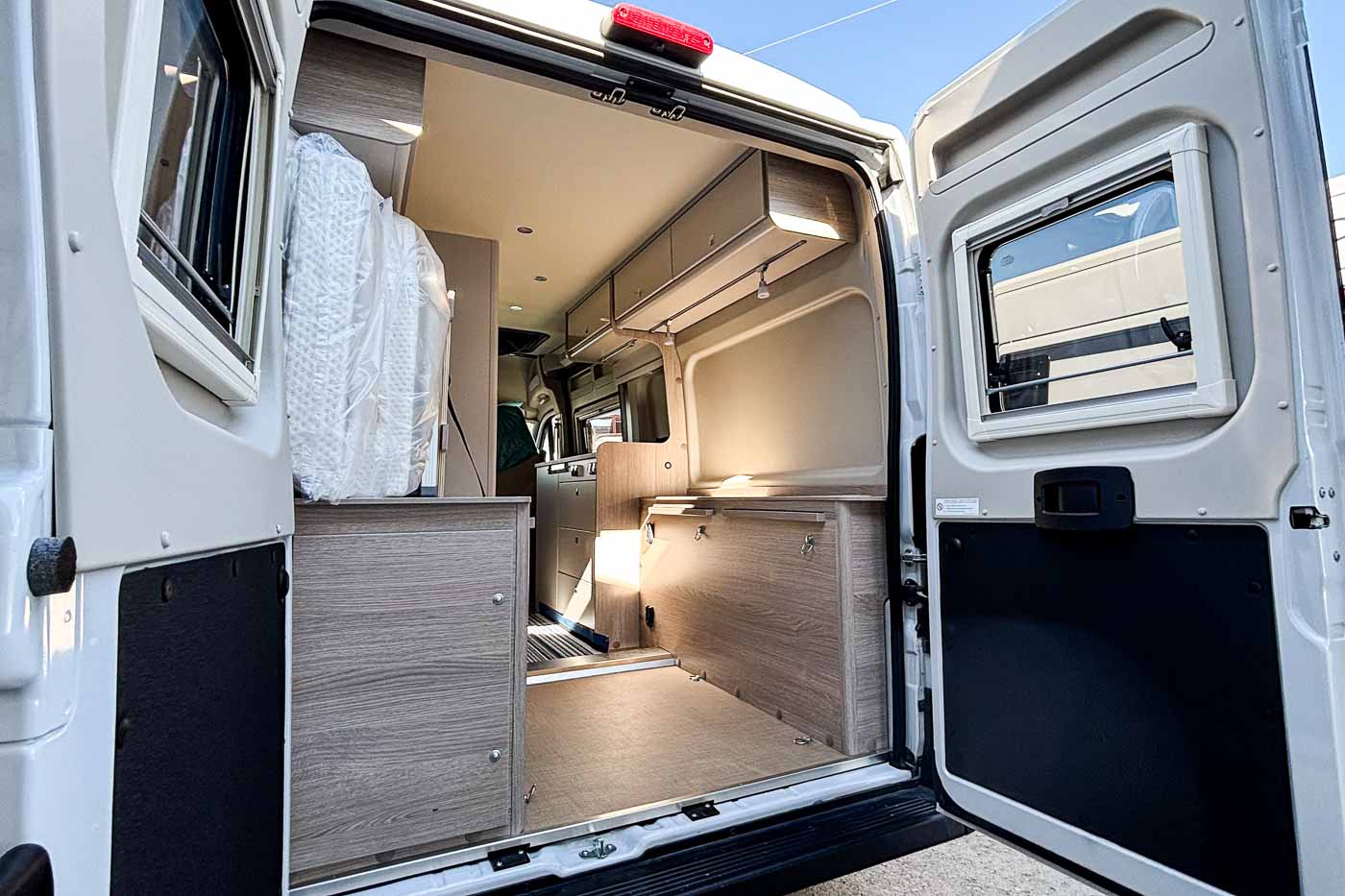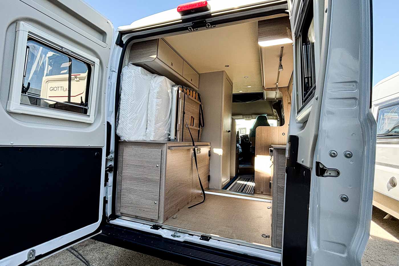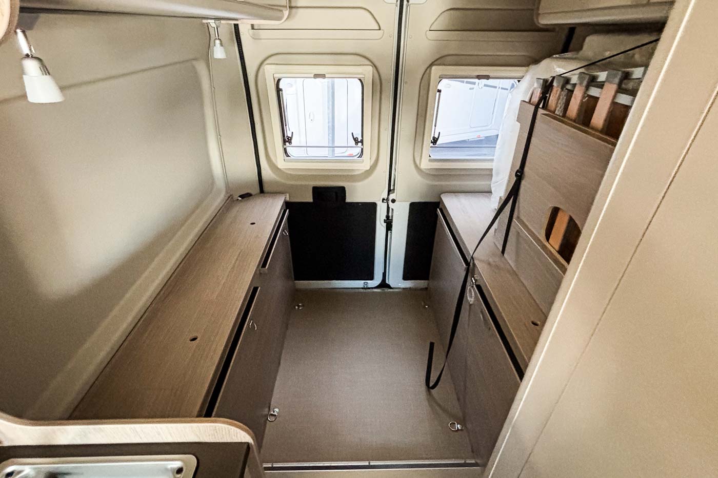 La Burstner Campeo C 600 cuenta con capacidad para cuatro personas, tanto durante la marcha como para dormir, gracias al techo elevable del que dispone. Cuenta además con una amplia cama doble en la parte trasera, fácilmente desmontable para permitir el acceso desde atrás así como la carga de equipaje.