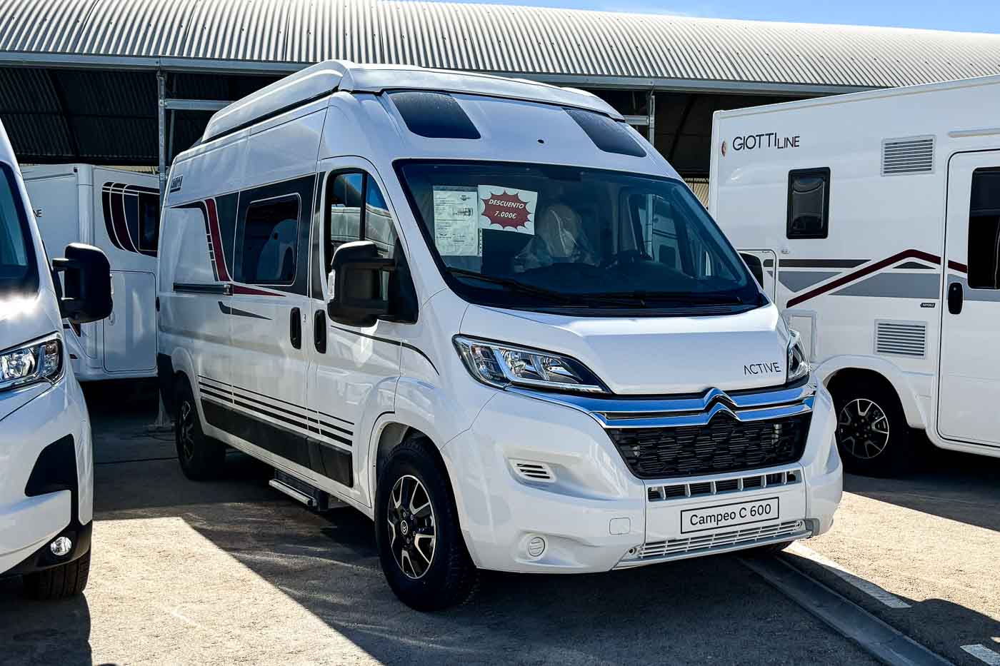 Pack Campeo Citroen: Control de tracción Retrovisores eléctricos y calefactables · Rejilla frontal y aros de las ópticas en negro brillante · Escalón eléctrico · Mosquitera de puerta de entrada · Parachoques delantero en color carrocería · Stores oscurecedores en cabina · Iluminación ambiente en cabina del conductor · Iluminación indirecta