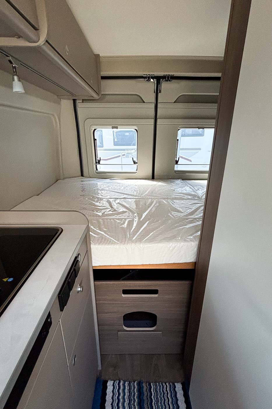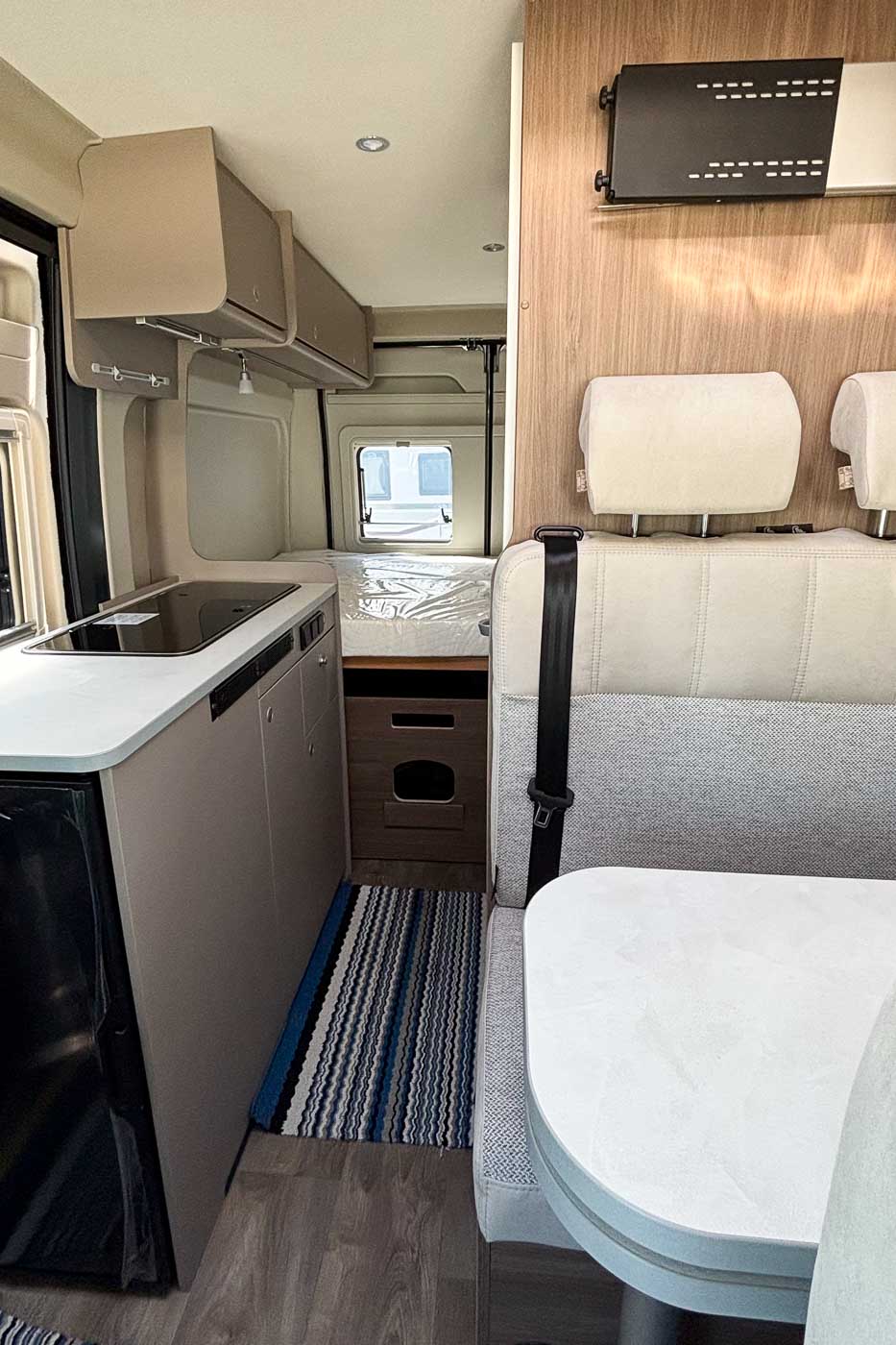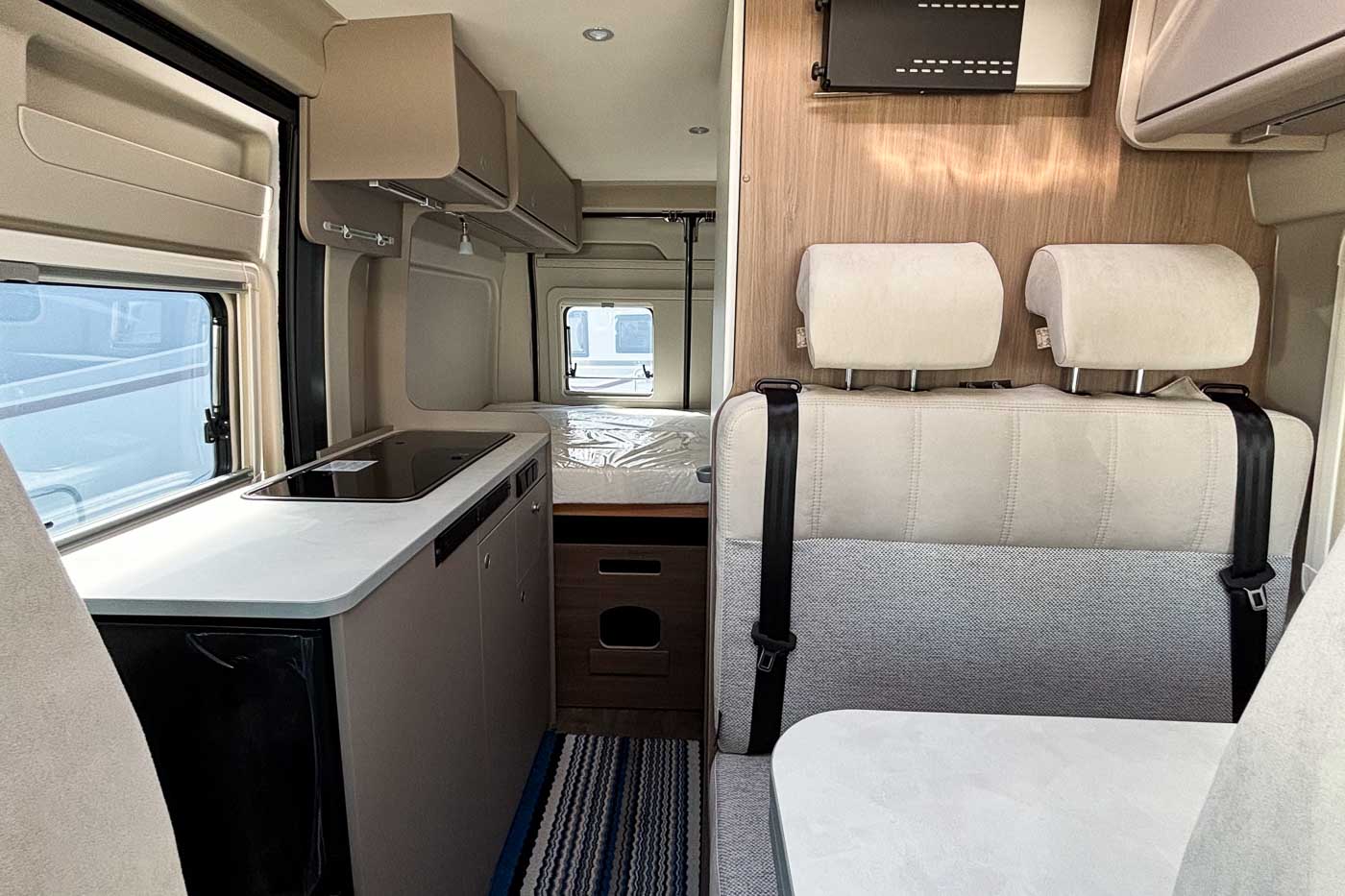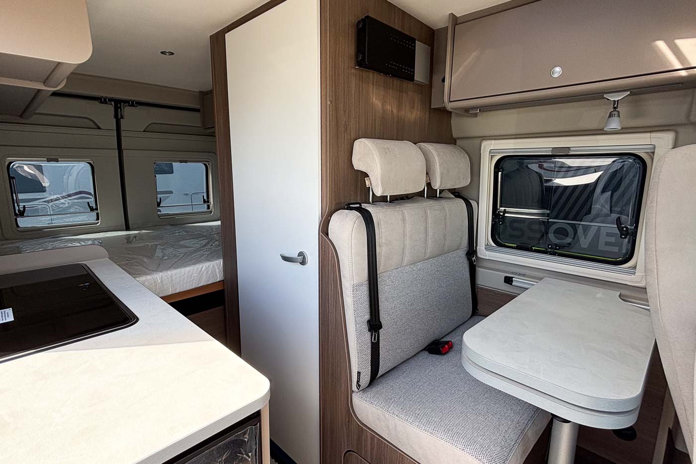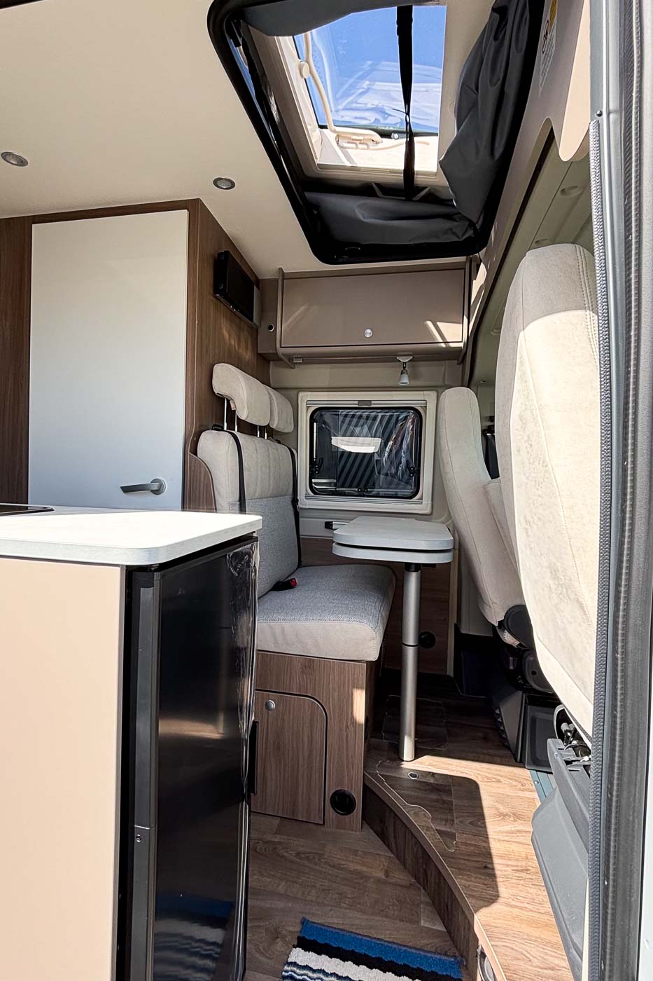 El moderno techo elevable amplía la furgoneta camper con un segundo dormitorio completo, ofreciendo así hasta cuatro plazas para dormir. La estructura, fabricada con tecnología LFI, es especialmente plana y, al mismo tiempo, extremadamente robusta: un verdadero avance en el segmento. Una buena ventilación, luz natural y un colchón de alta calidad garantizan un sueño reparador, mientras que el interior sigue siendo flexible. Una solución inteligente.