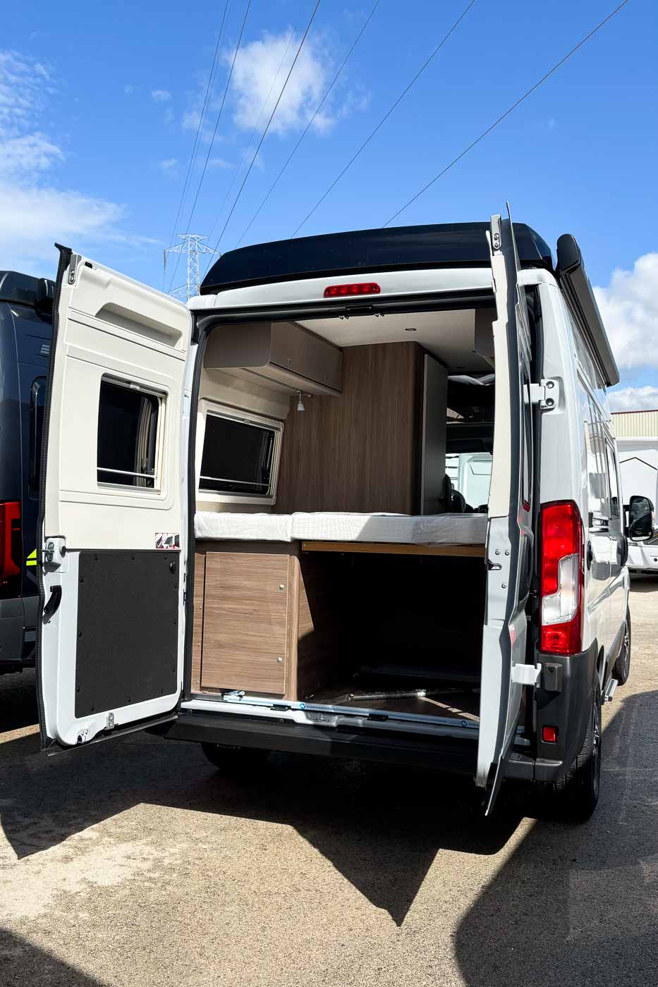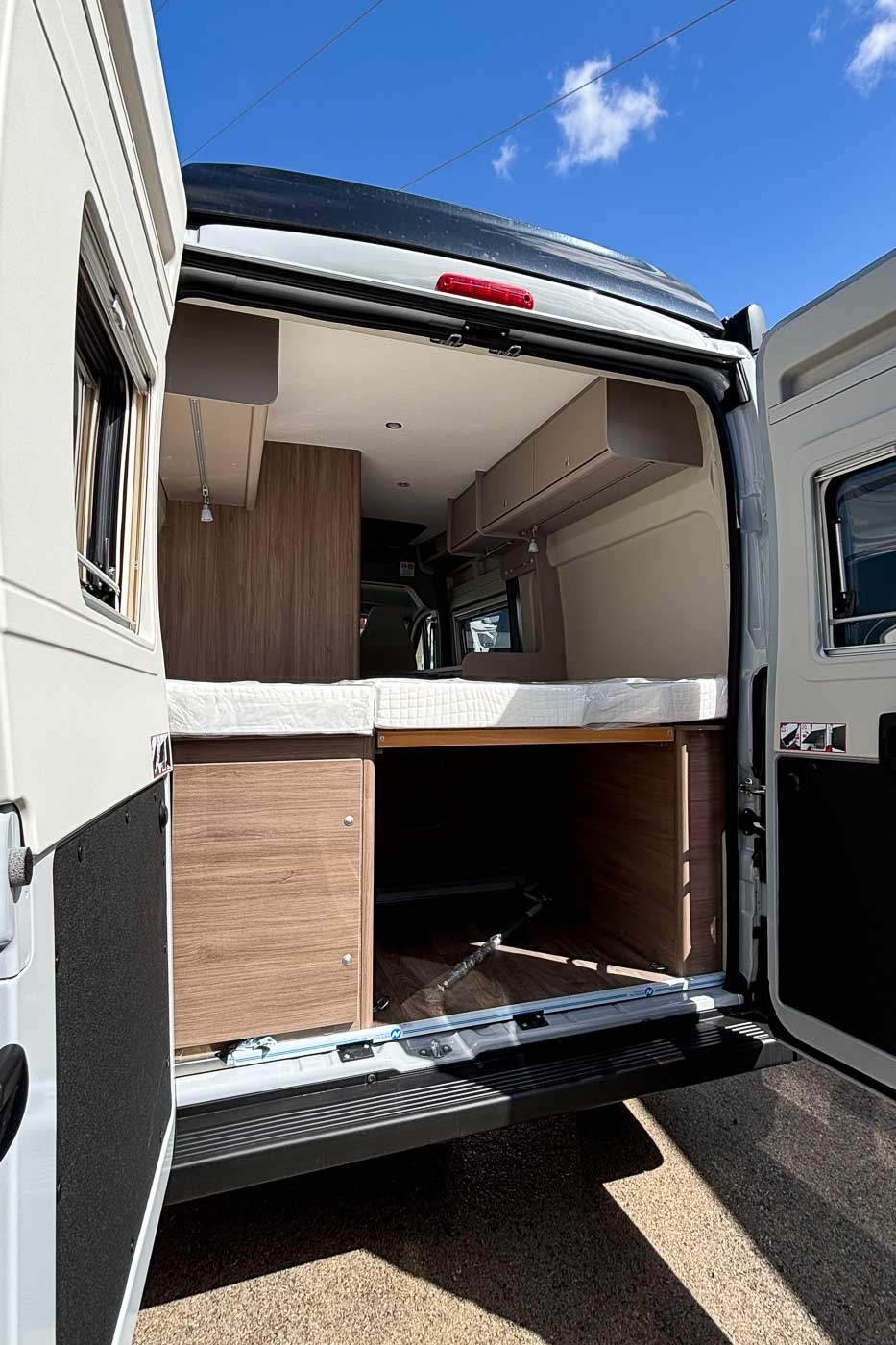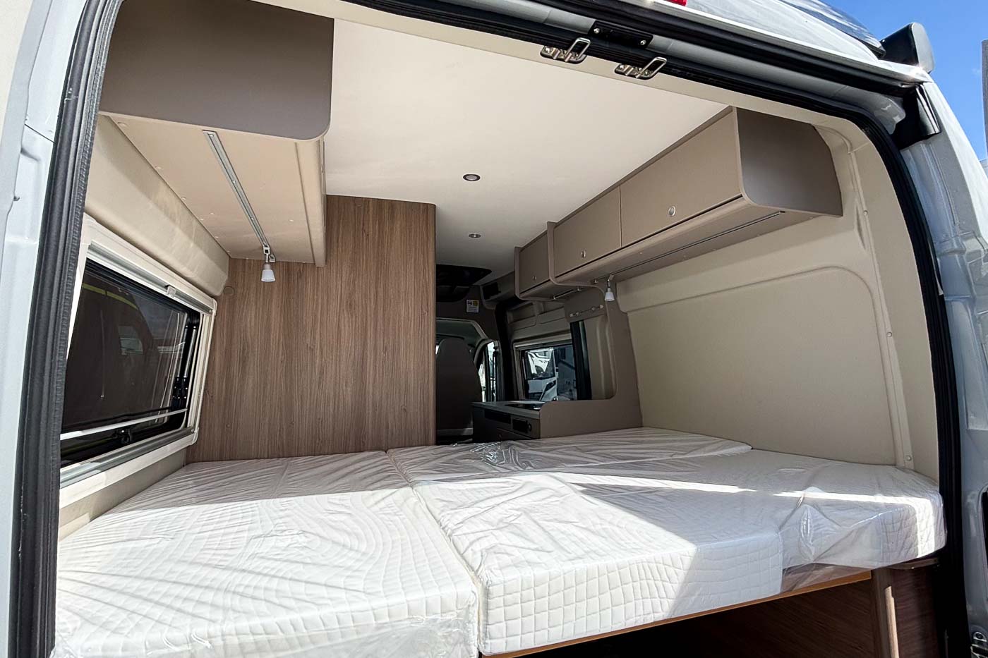 Cuenta con amplia cama doble en la parte posterior, fácil de montar y desmontar para aprovechar el espacio como zona de carga en caso de que lo necesitemos.