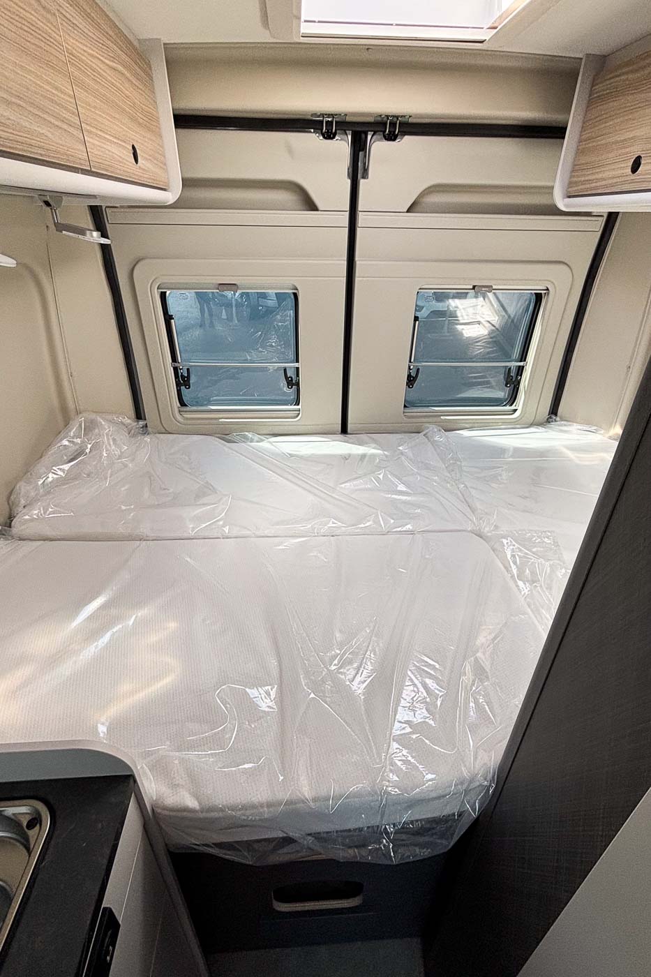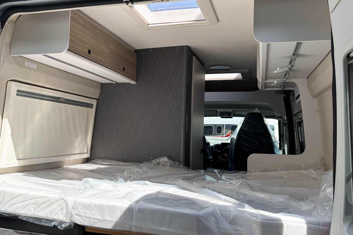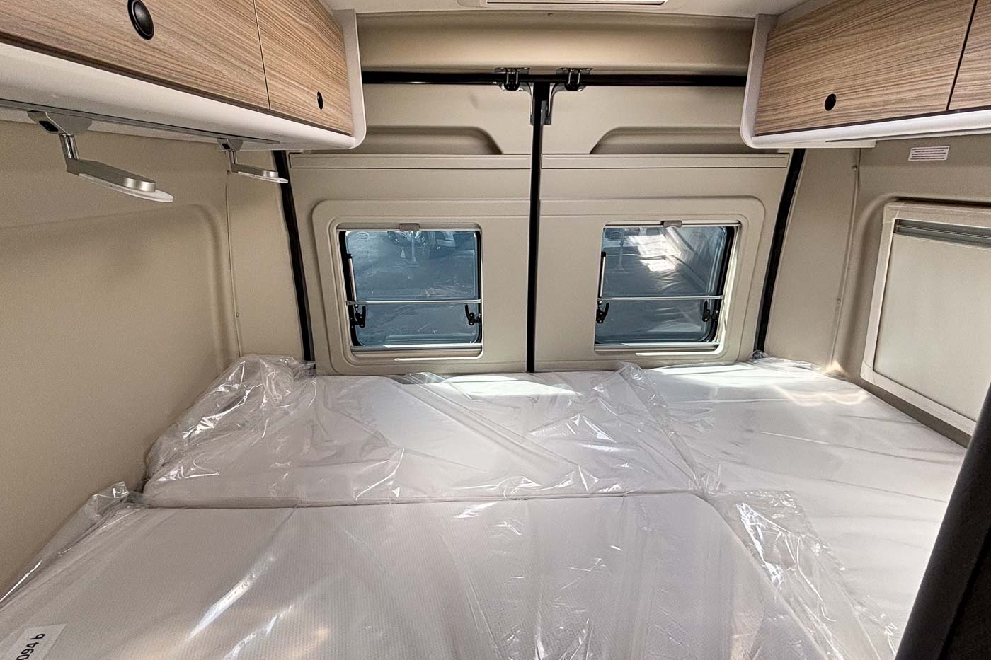 Su distribución se caracteriza principalmente por disponer de amplia cama transversal en la parte trasera, fácilmente desmontable para aprovechar el espacio para el transporte de equipaje durante los trayectos.