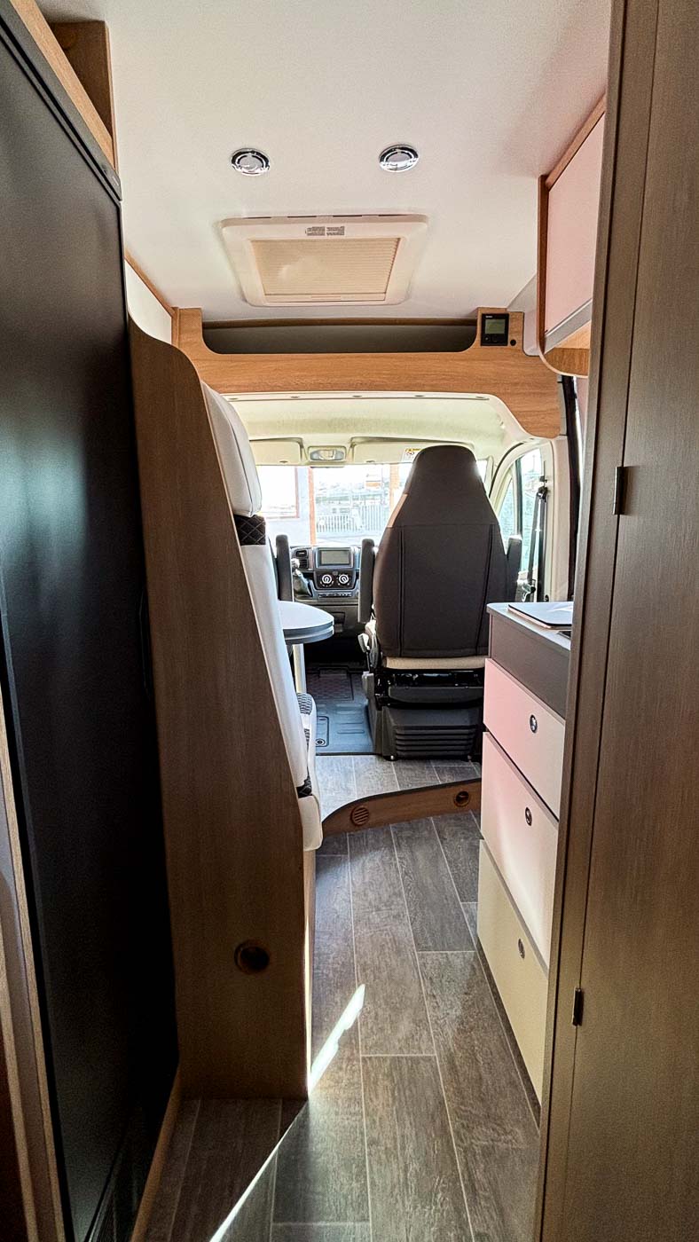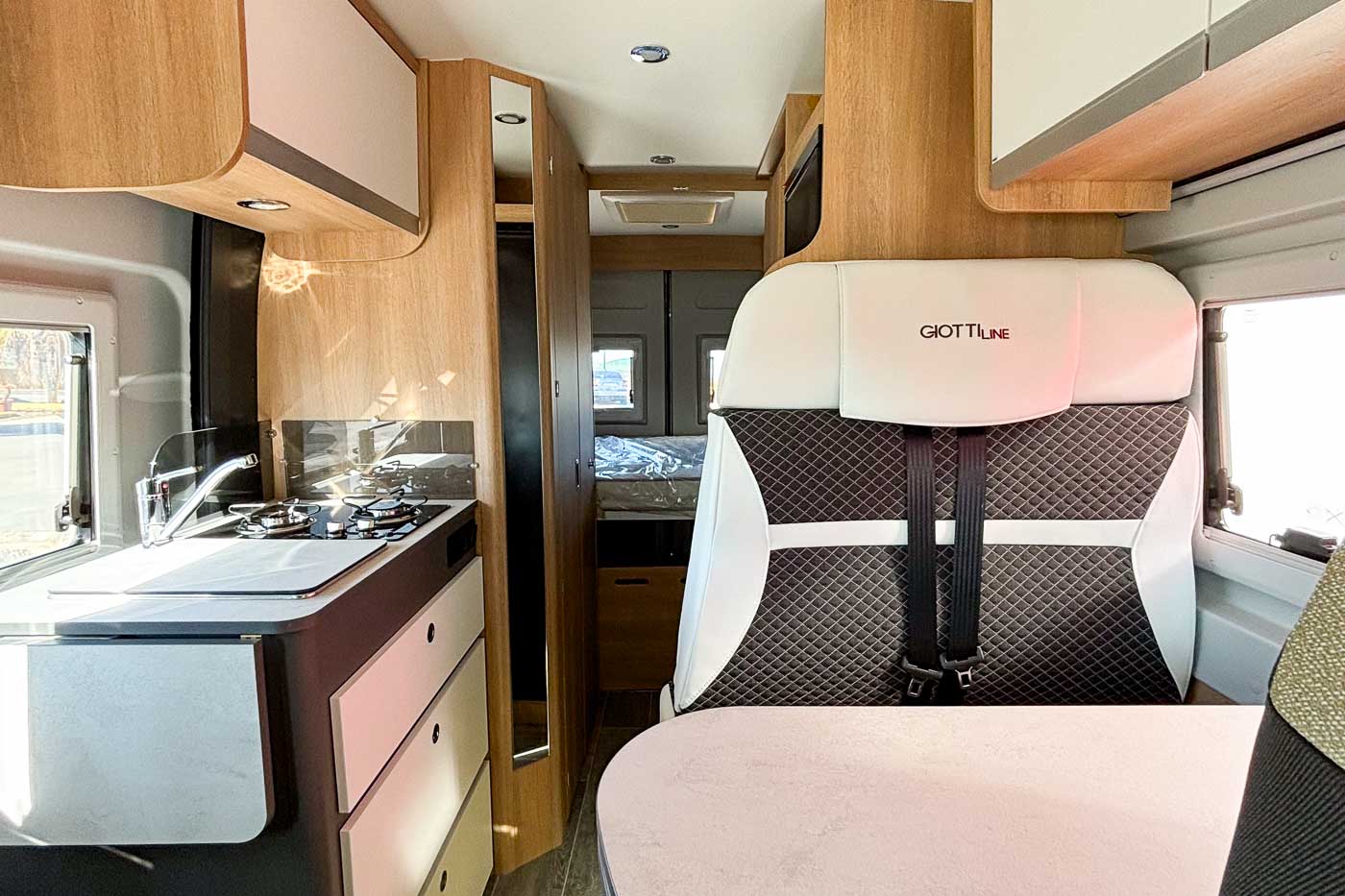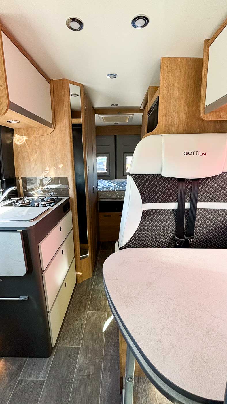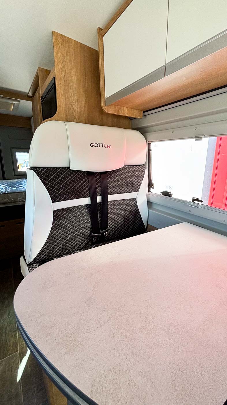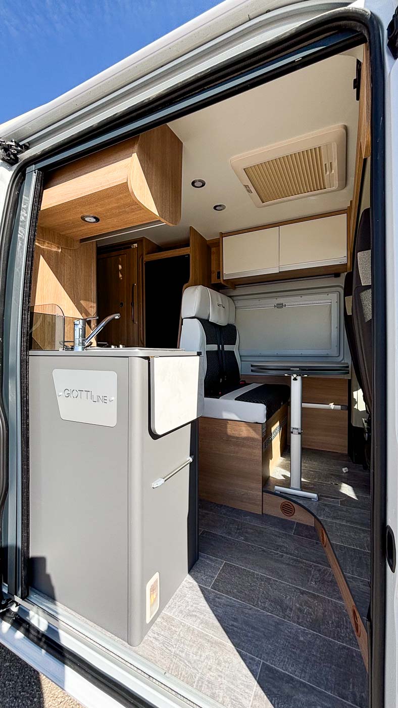 La Giottiline 60 T es una cámper de 5,99 metros de largo con capacidad para cuatro personas durante la marcha y tres plazas para dormir. Un vehículo perfecto para parejas y familias que quieran disfrutar de sus viajes con todo lo necesario.