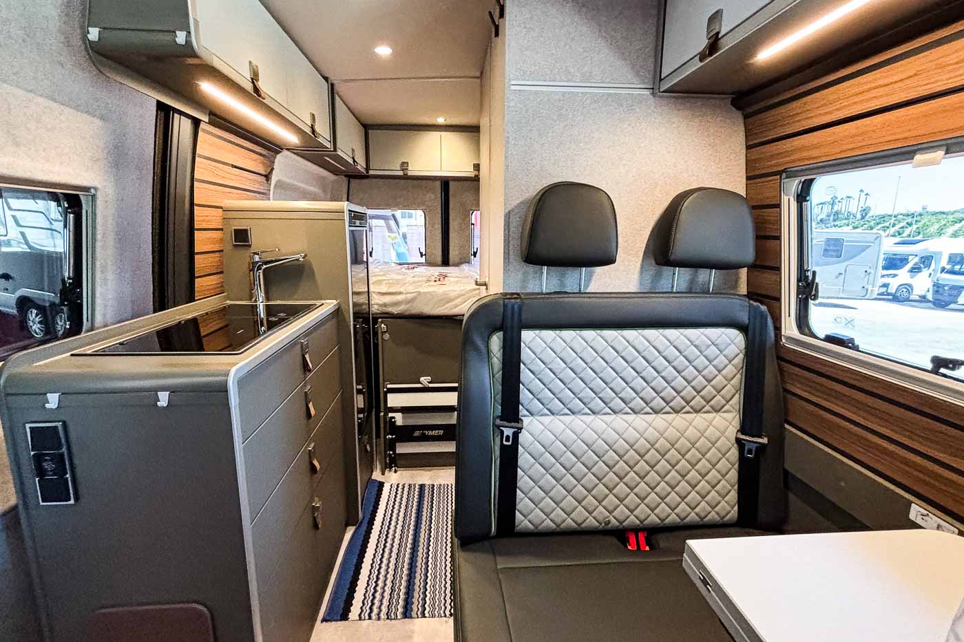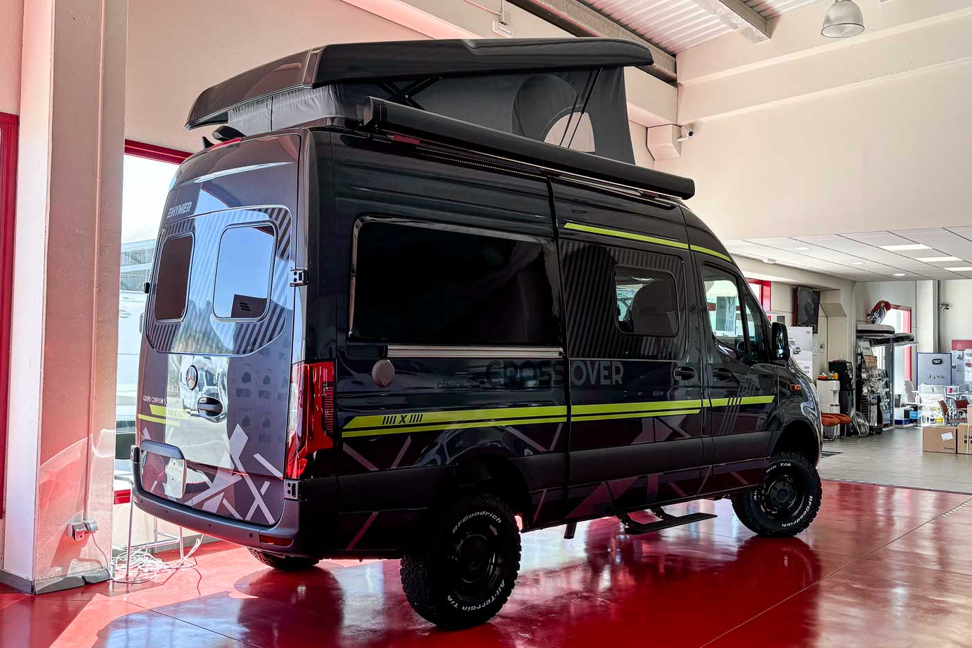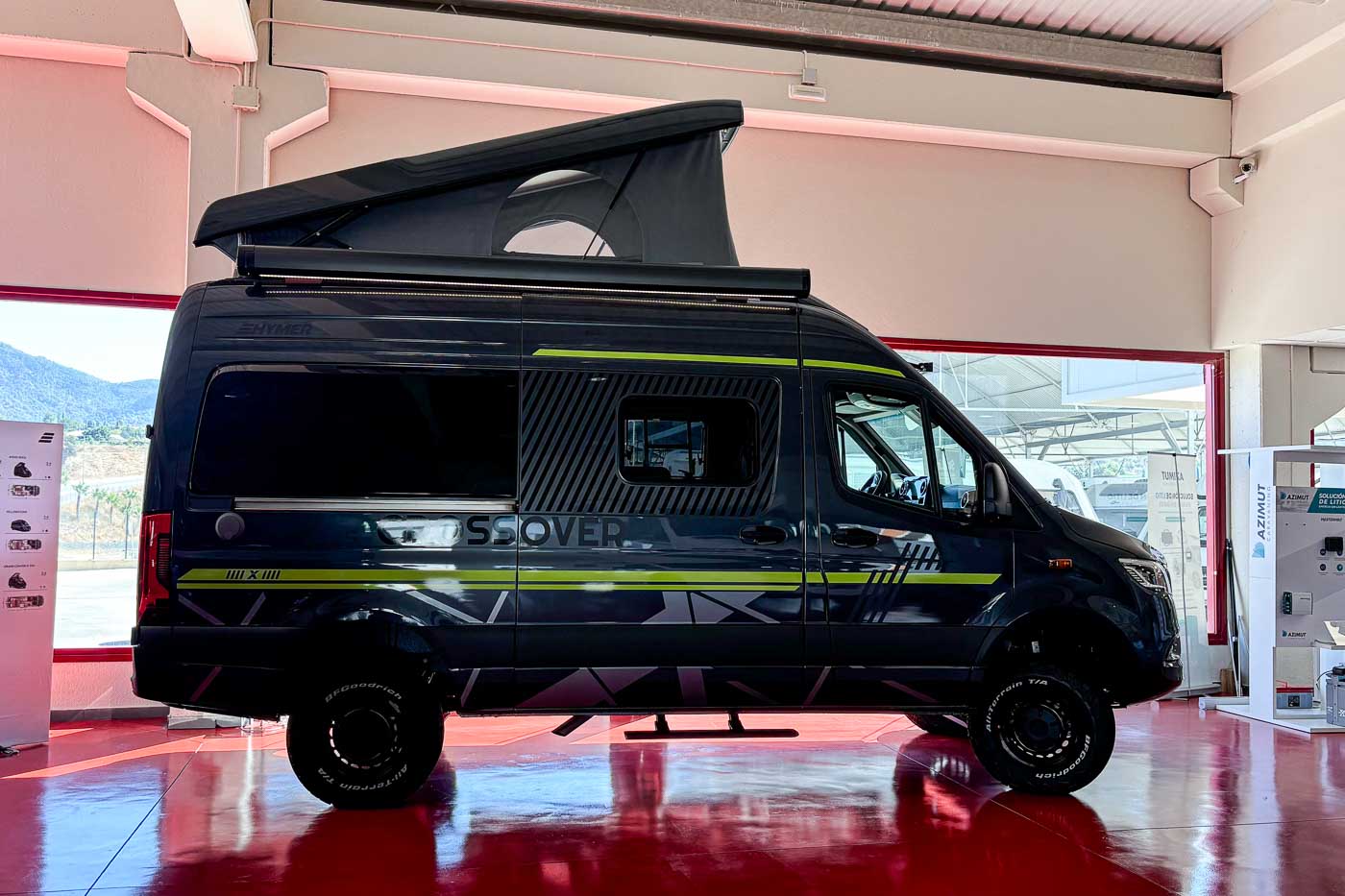 La Hymer Gran Canyon 4×4 es una cámper de menos de seis metros de largo con capacidad para cuatro personas. Cuenta con amplia cama doble en la parte posterior, fácil de montar y desmontar para usar la parte trasera como zona de carga durante el día.