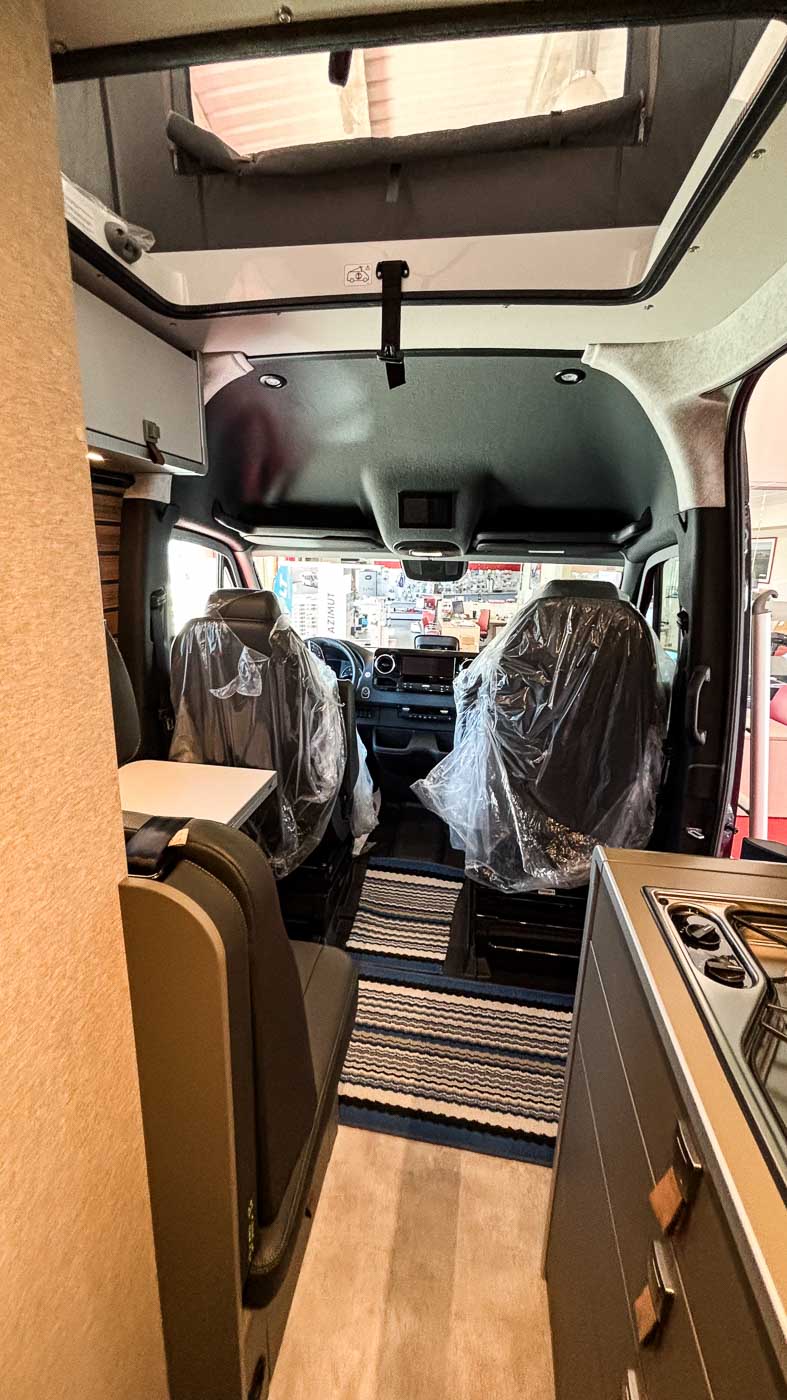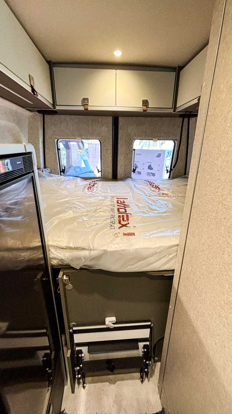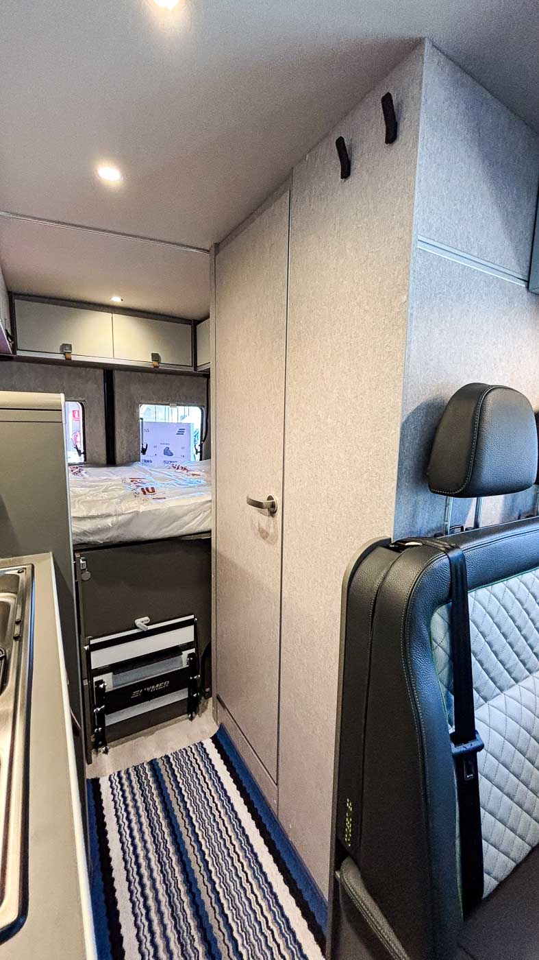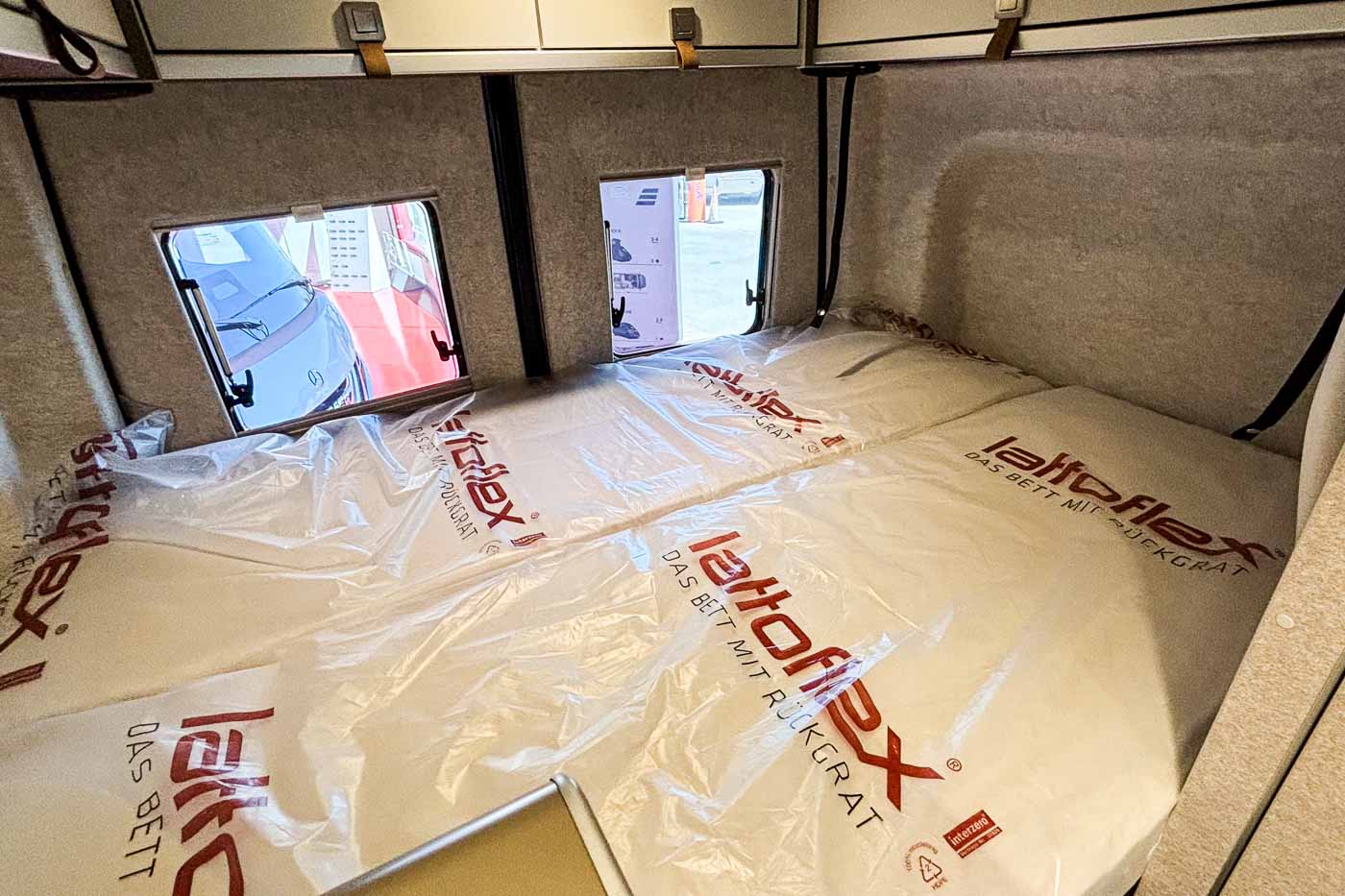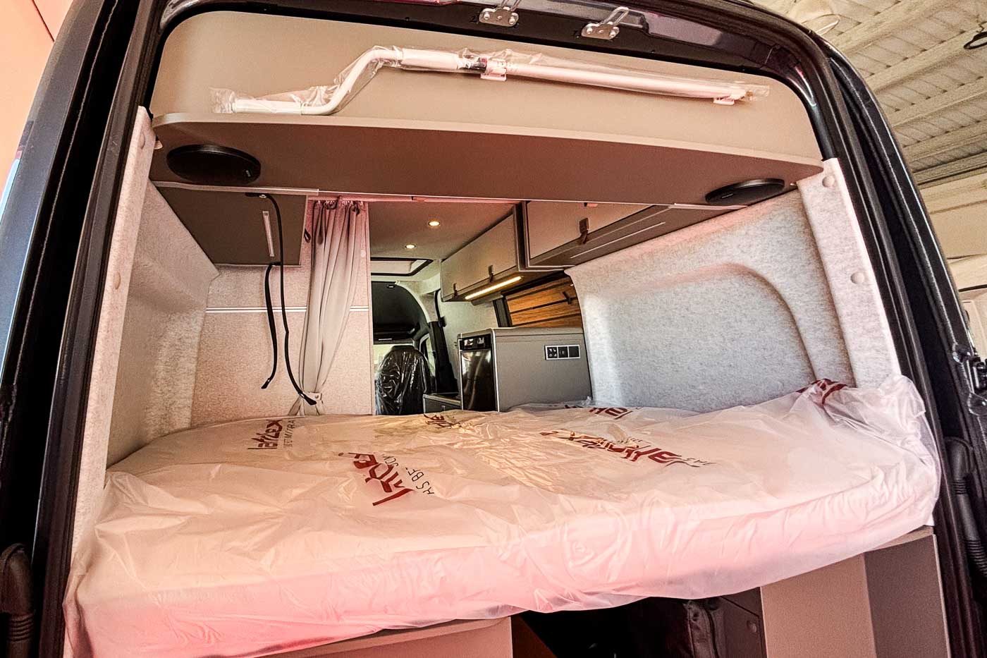Gracias a su techo abatible, encontramos otra cama doble de grandes dimensiones, ofreciendo así hasta cuatro plazas para dormir.