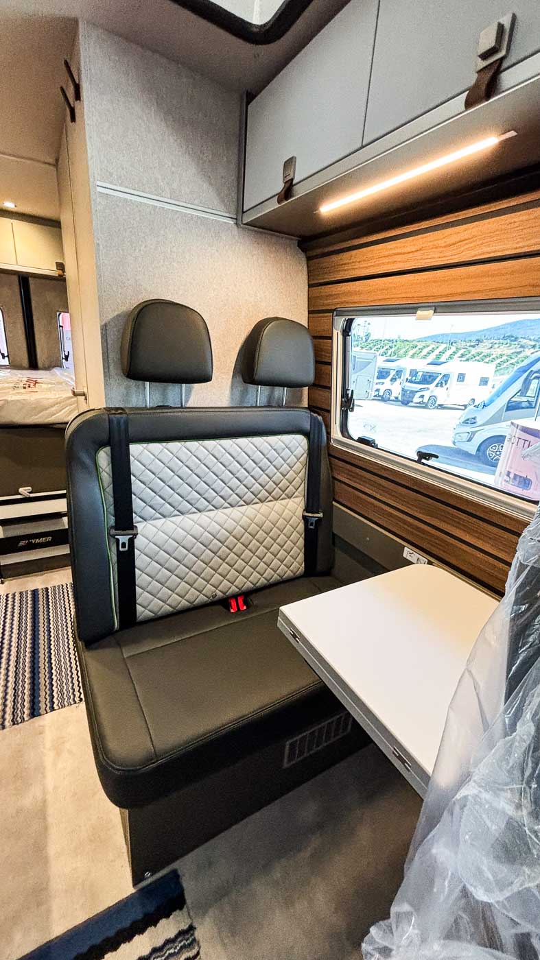 Dispone de cómodo salón, en el que compartir los mejores momentos durante la estancia; cuenta con mesa plegable, permitiendo aprovechar al máximo el espacio, y los asientos giratorios de la cabina.