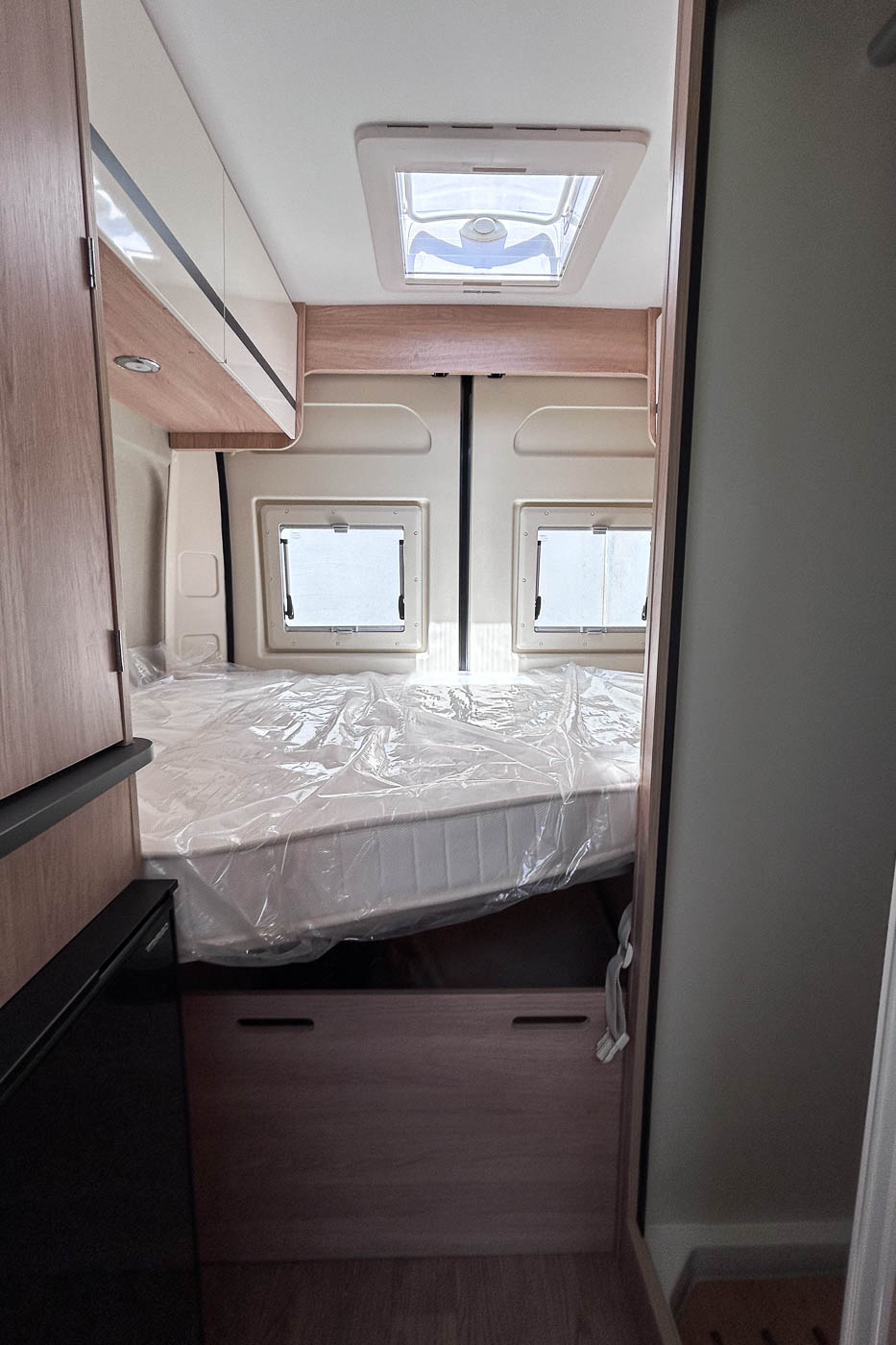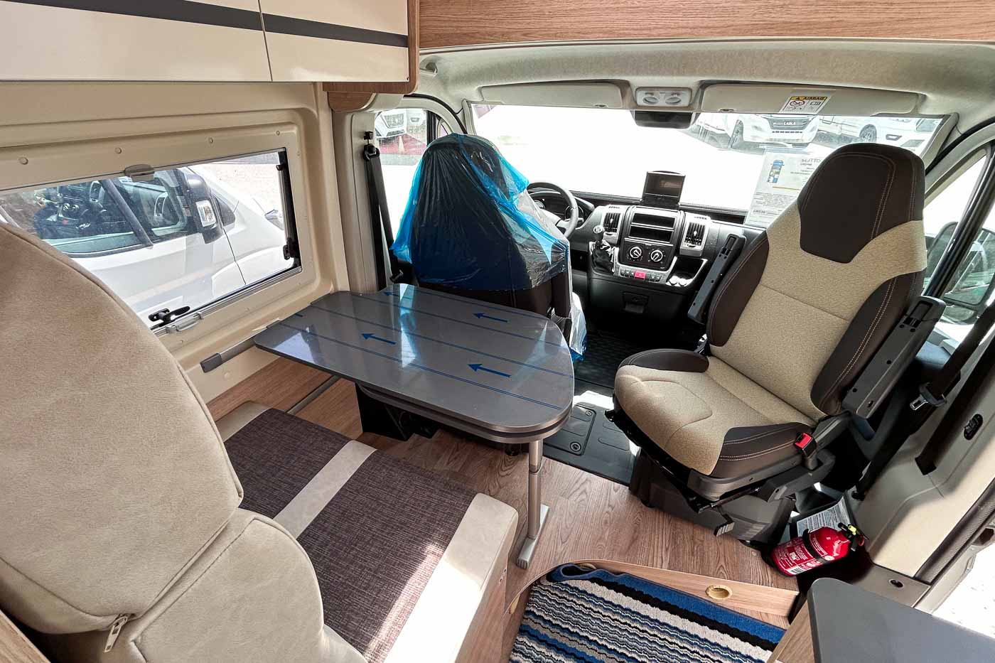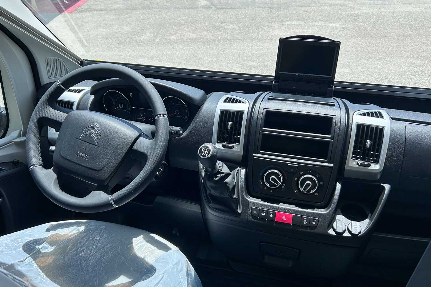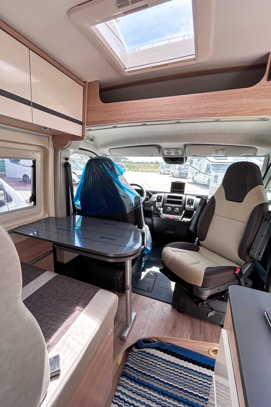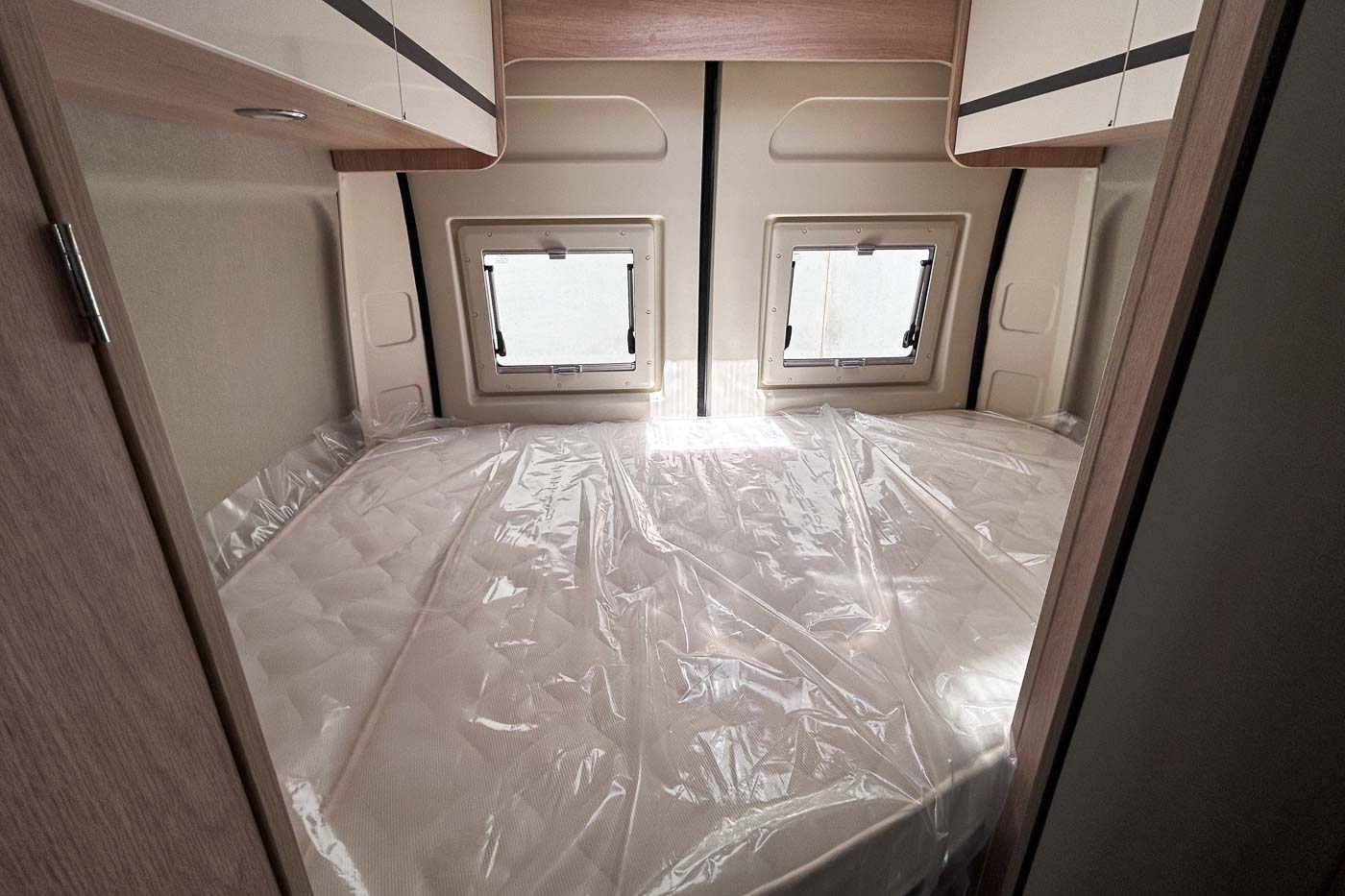 Pack Van: Aire acondicionado cabina · Traction + Hill holder + Hill descen · Control de crucero · Start & Stop · Doble airbag · Espejos retrovisores eléctricos calefactados · Parachoques de la cabina del mismo color · Predisposición radio · Mando TRUMA CP Plus · Somier de láminas cama trasera · Juego de cama adicional para comedor · Faros antiniebla