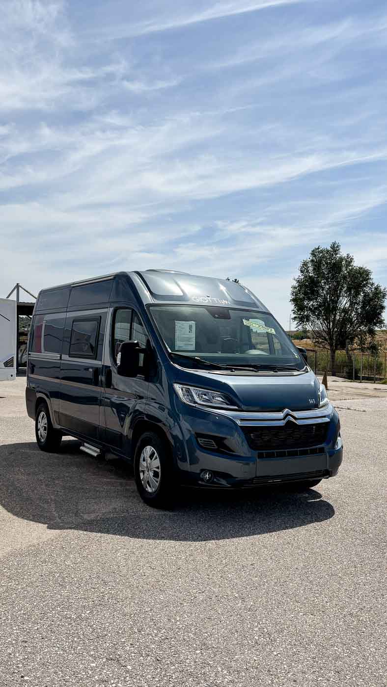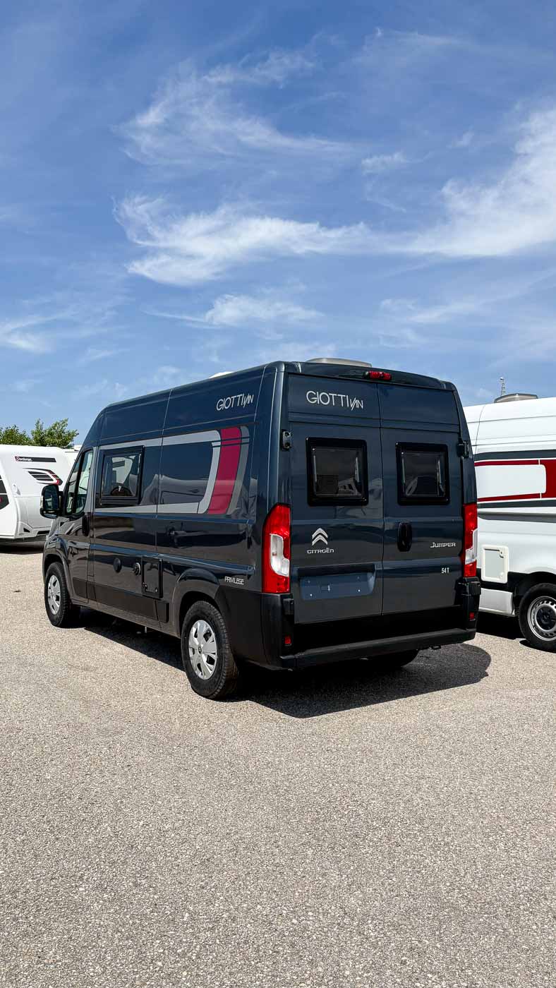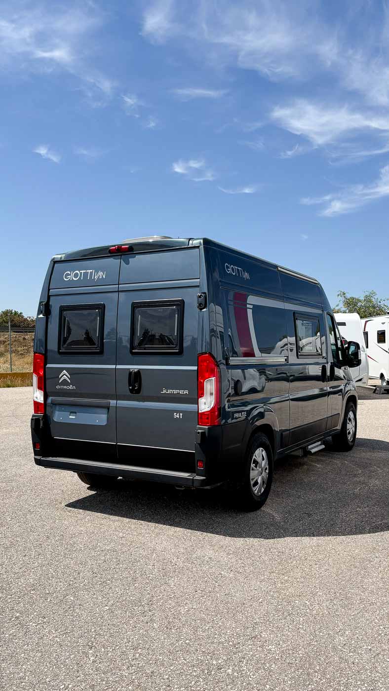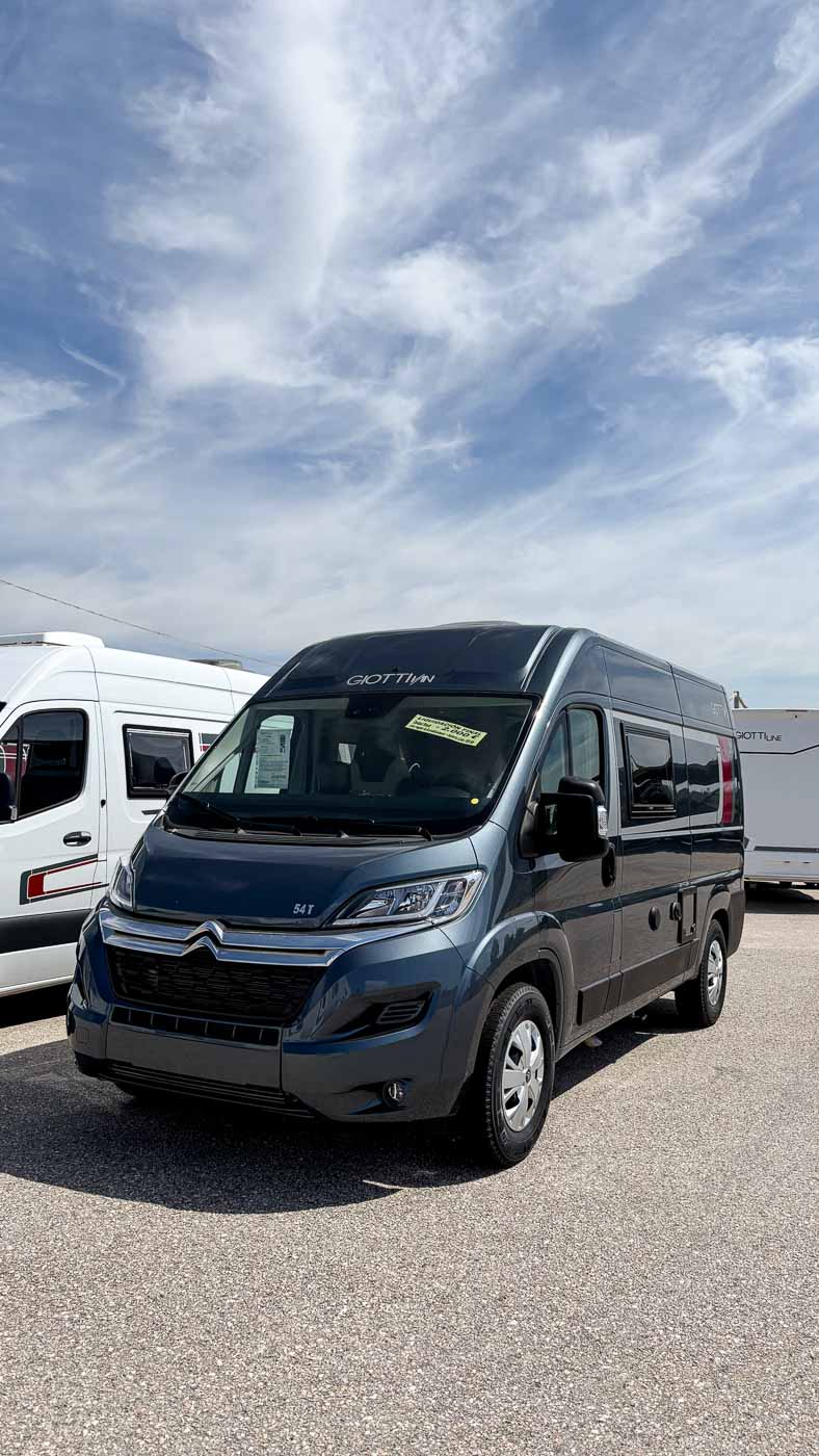 La Giottiline 54 T es una cámper compacta de tan sólo 5,41 metros de largo, con capacidad para cuatro personas durante la marcha y tres plazas para dormir. Un vehículo perfecto para parejas y familias que quieran disfrutar de sus viajes con todo lo necesario en un vehículo de reducidas dimensiones.
