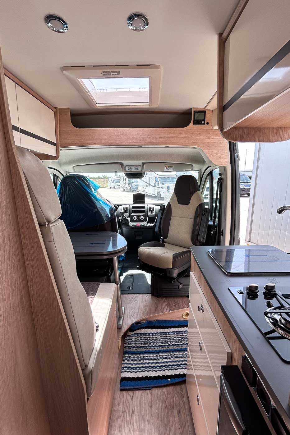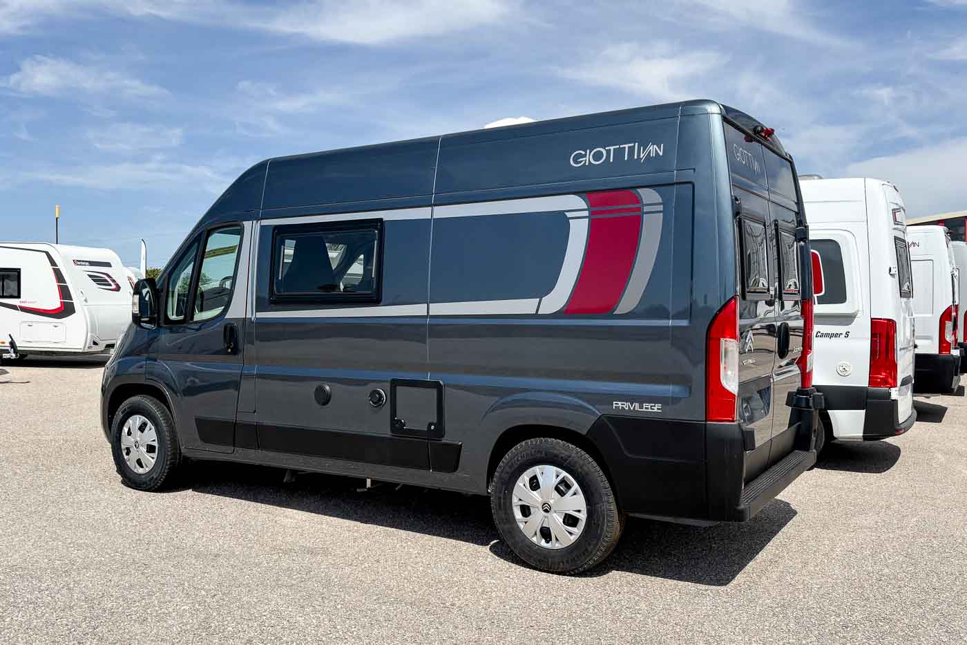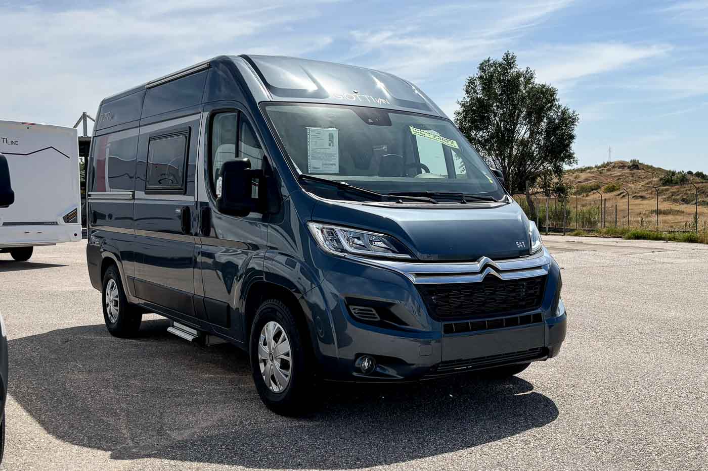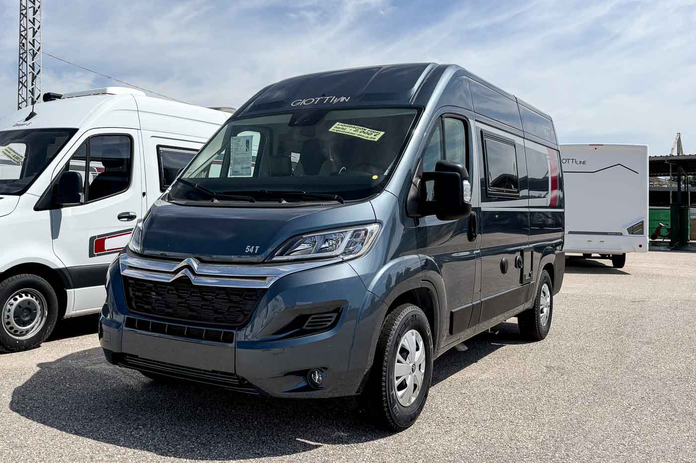 La Giottiline 54 T es una cámper compacta de tan sólo 5,41 metros de largo, con capacidad para cuatro personas durante la marcha y tres plazas para dormir. Un vehículo perfecto para parejas y familias que quieran disfrutar de sus viajes con todo lo necesario en un vehículo de reducidas dimensiones.