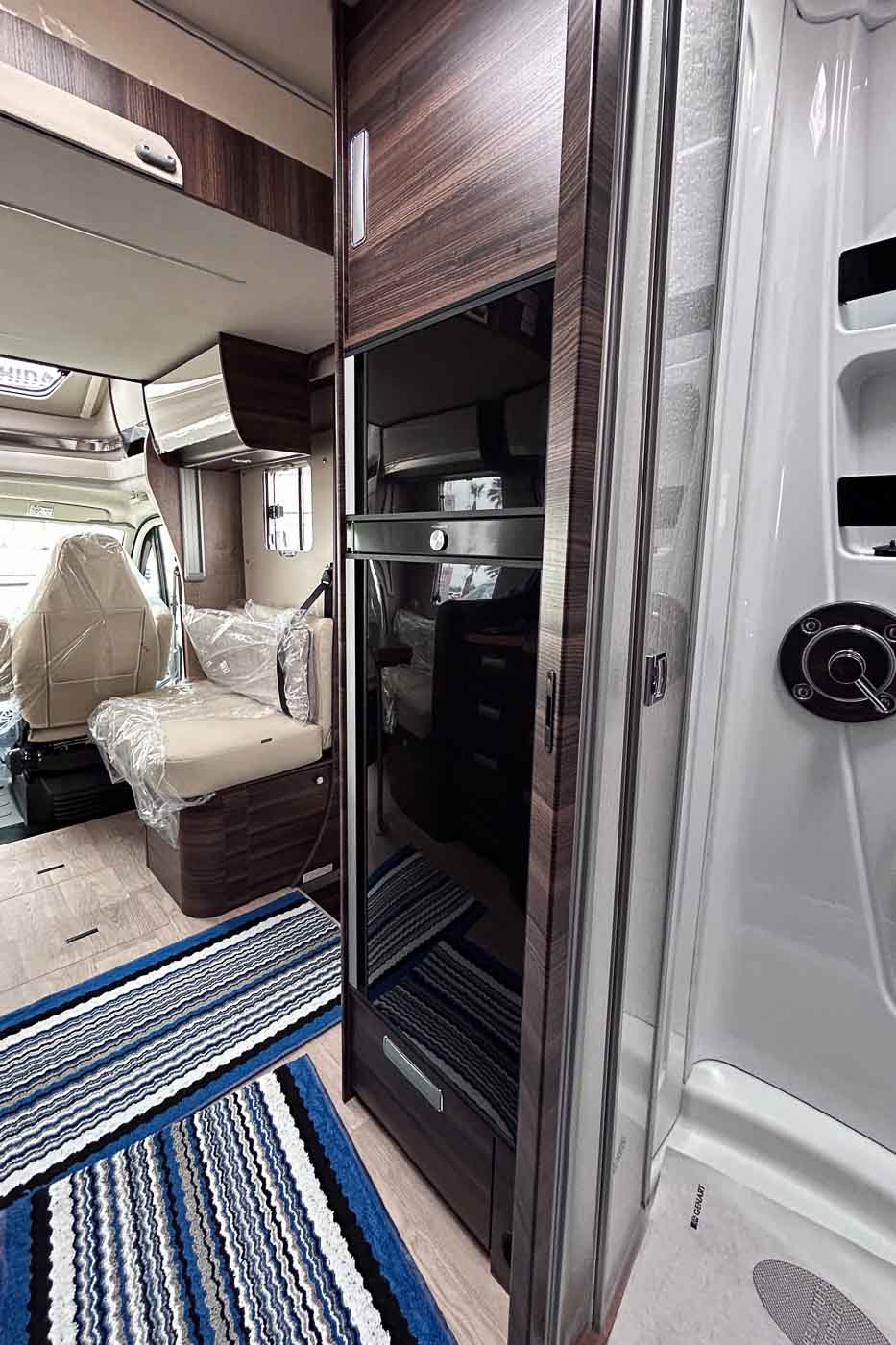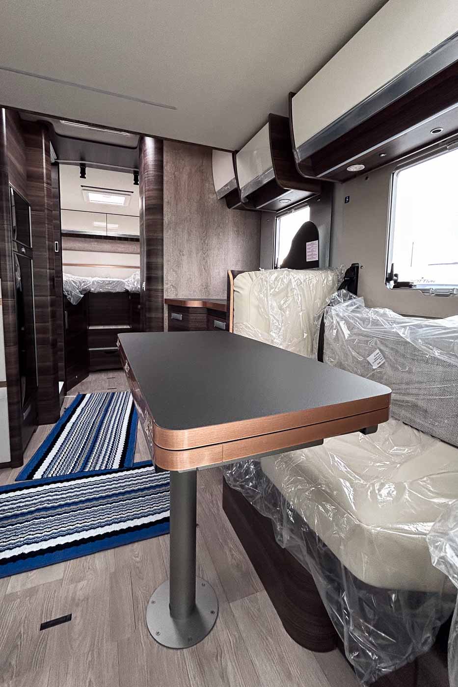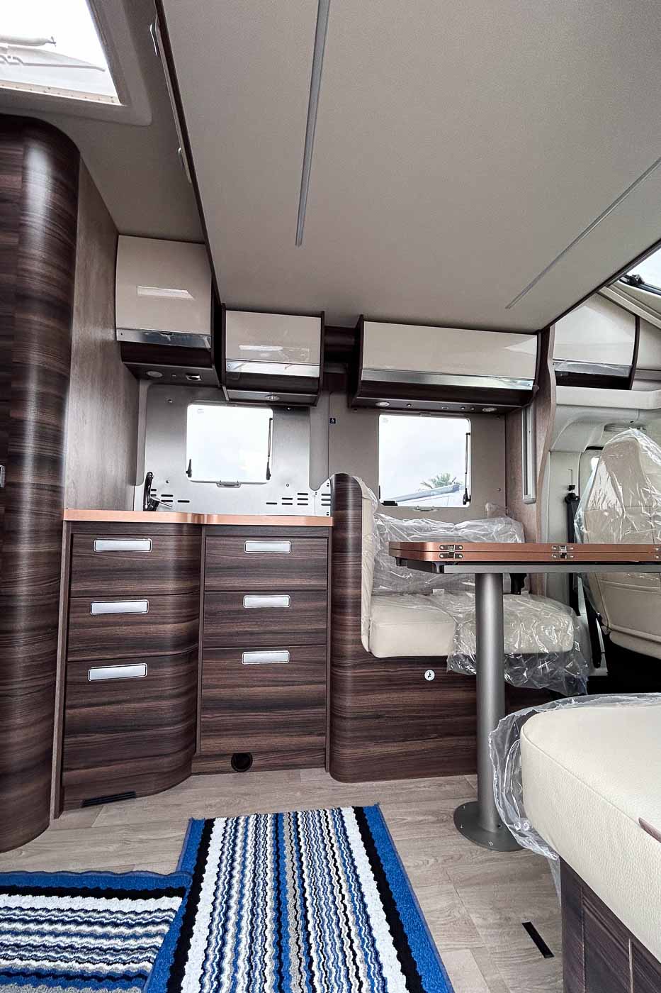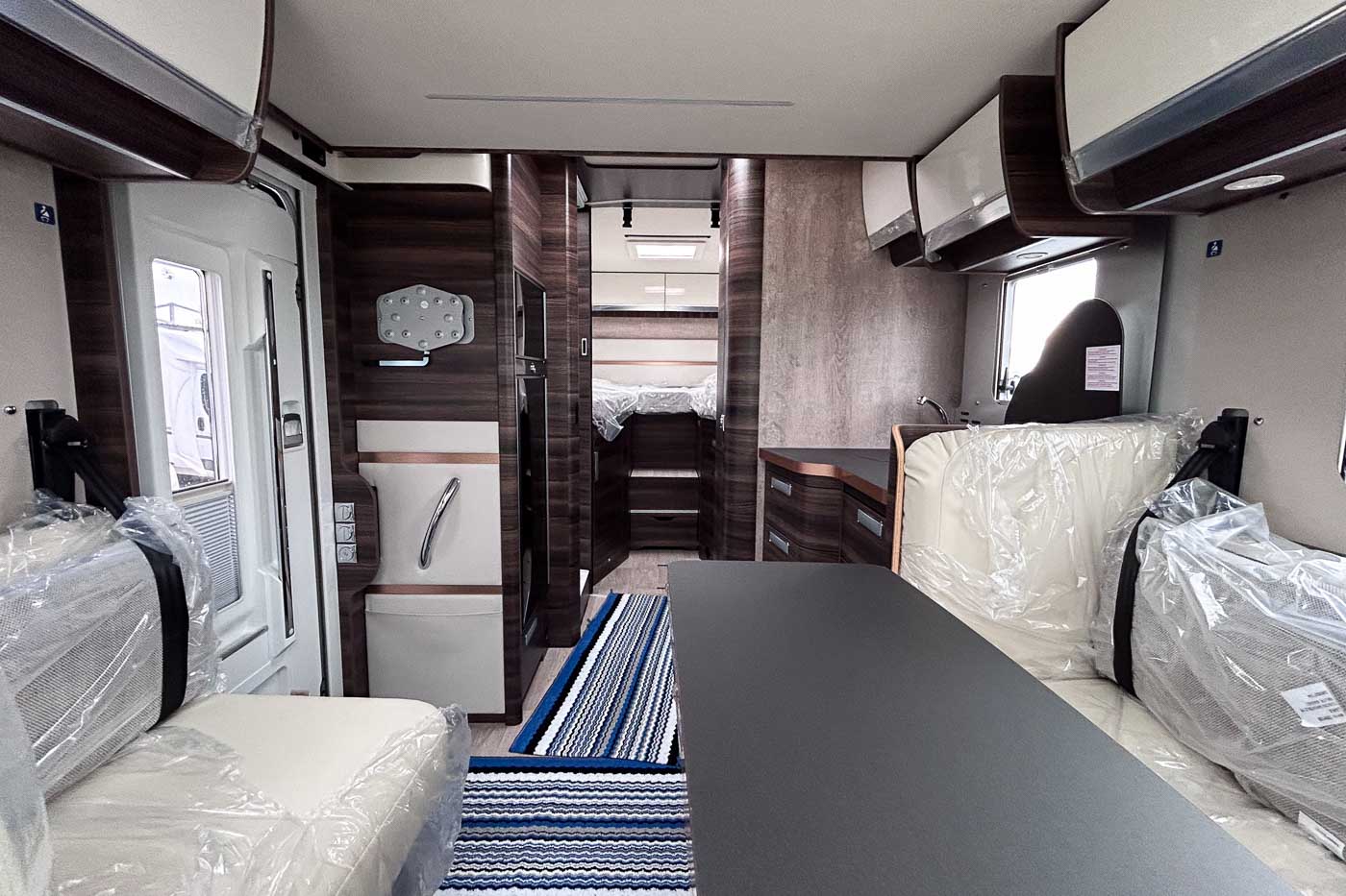 Su distribución interior se caracteriza principalmente por disponer de camas gemelas en la parte trasera, permitiendo disfrutar de dos camas individuales de fácil acceso, transformable en un único espacio para el descanso de grandes dimensiones. Cuenta con numerosos espacios de almacenamiento, tanto en la parte superior como en la parte inferior de la cama.